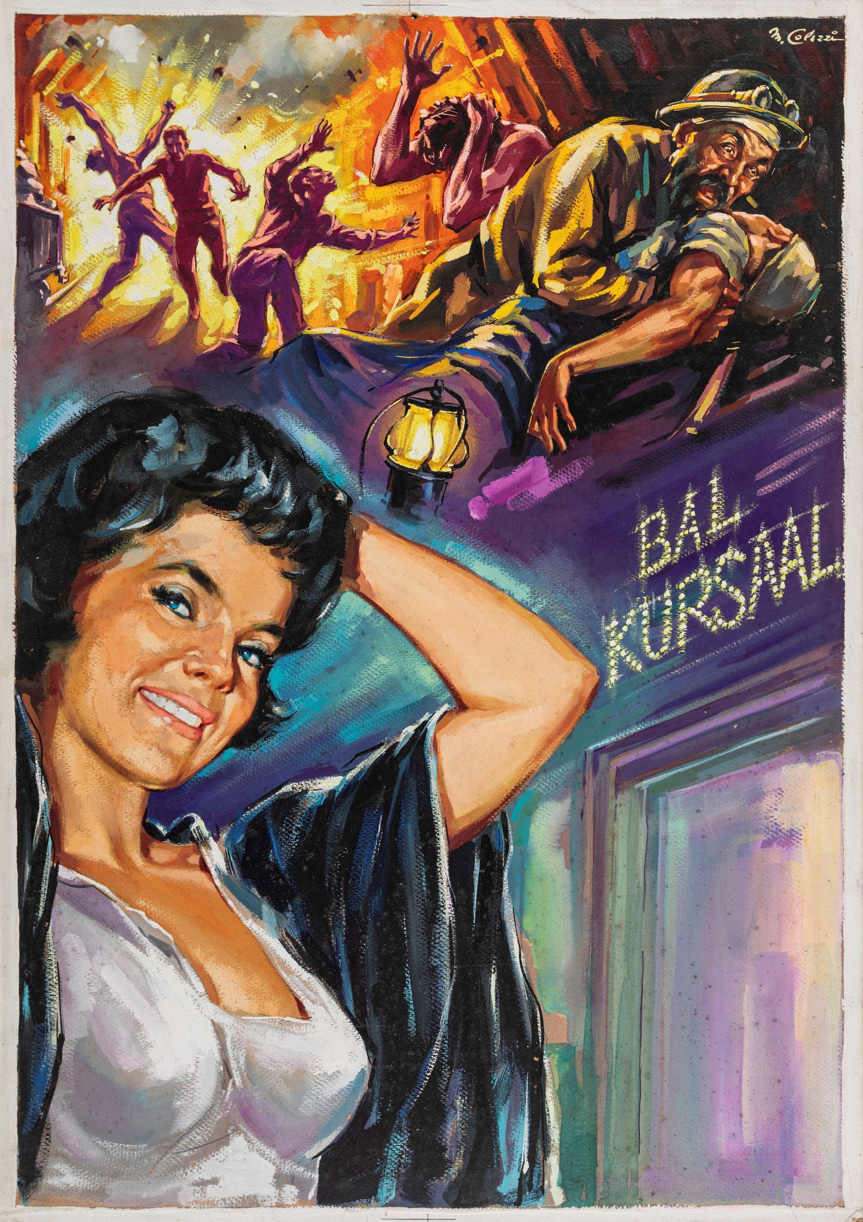 Bozzetto originale realizzato da Colizzi per la locandina ufficiale del film La tragedia della miniera, diretto da Georg Wilhelm Pabst con Alexander Granach e Fritz Kampers nel 1931. Firmato.