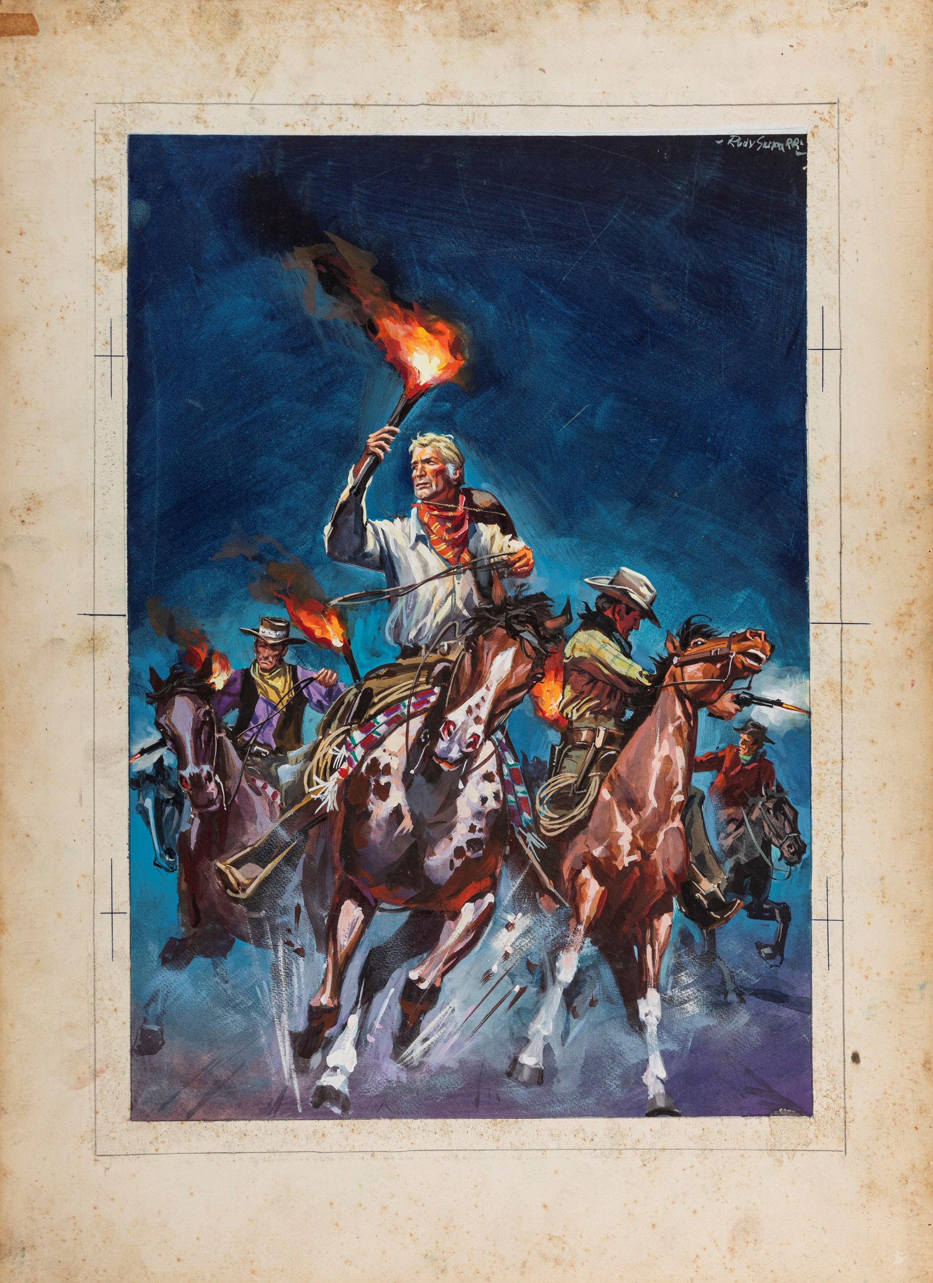 1964 Bozzetto originale realizzato da Gasparri per la locandina ufficiale del film Le pistole non discutono, diretto da Mario Caiano con Rod Cameron e Angel Aranda nel 1964. Firmato.