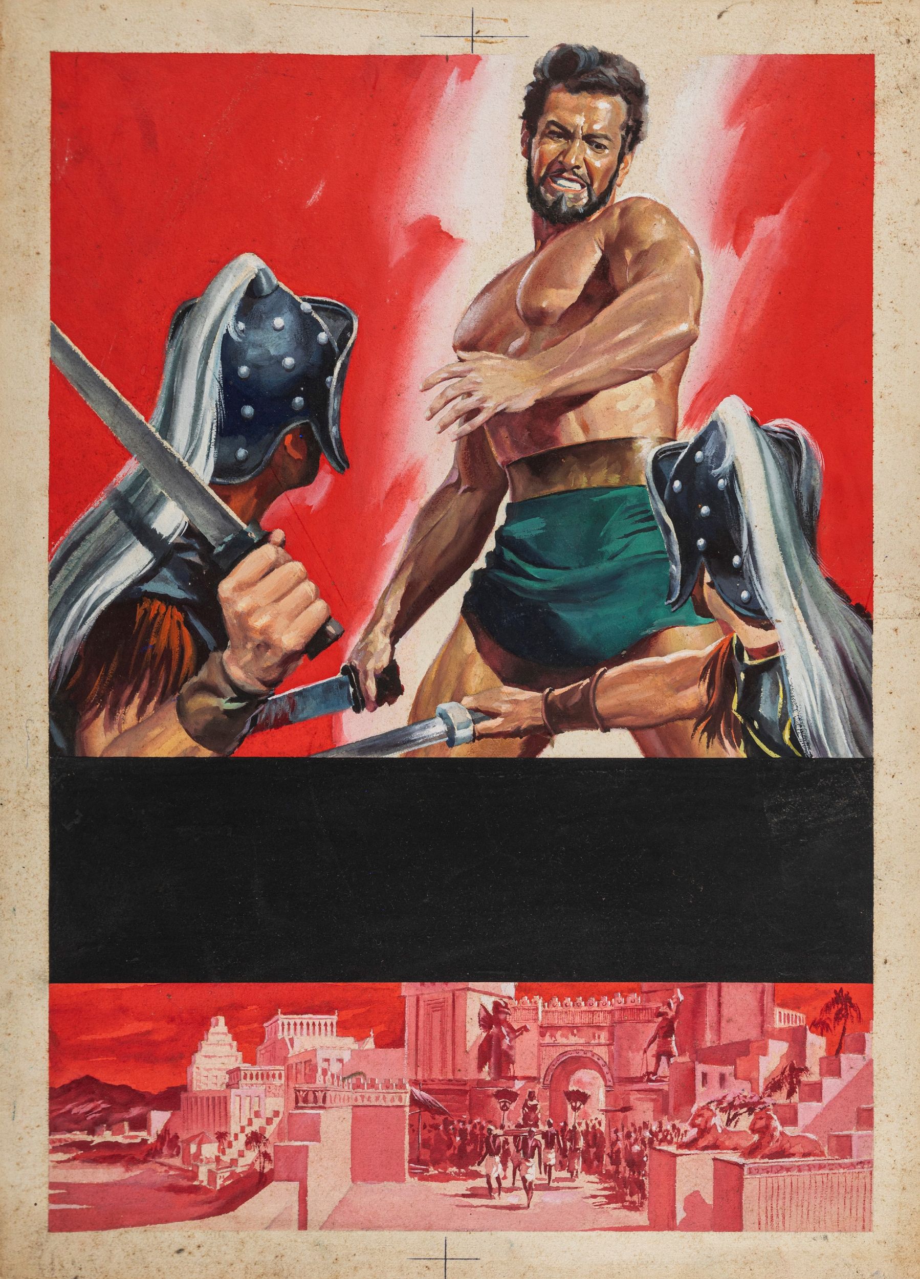 1963 Bozzetto originale realizzato per la locandina ufficiale del film L'eroe di Babilonia, diretto da Siro Marcellini con Gordon Scott e Moira Orfei nel 1963.