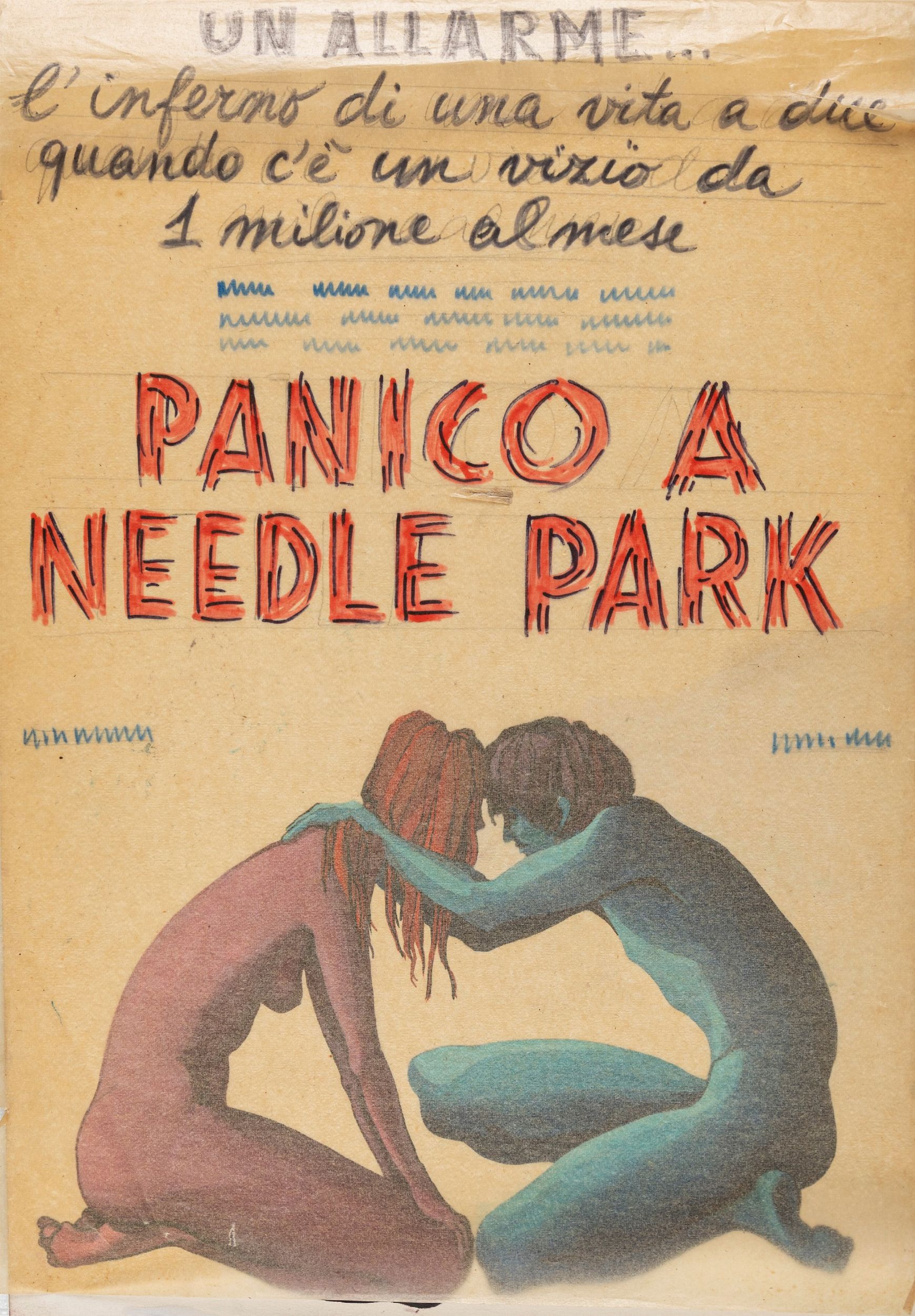 1971 Bozzetto preliminare realizzato per la locandina del film Panico a Needle Park, diretto da Jerry Schatzberg con Al Pacino e Kitty Winn nel 1971.