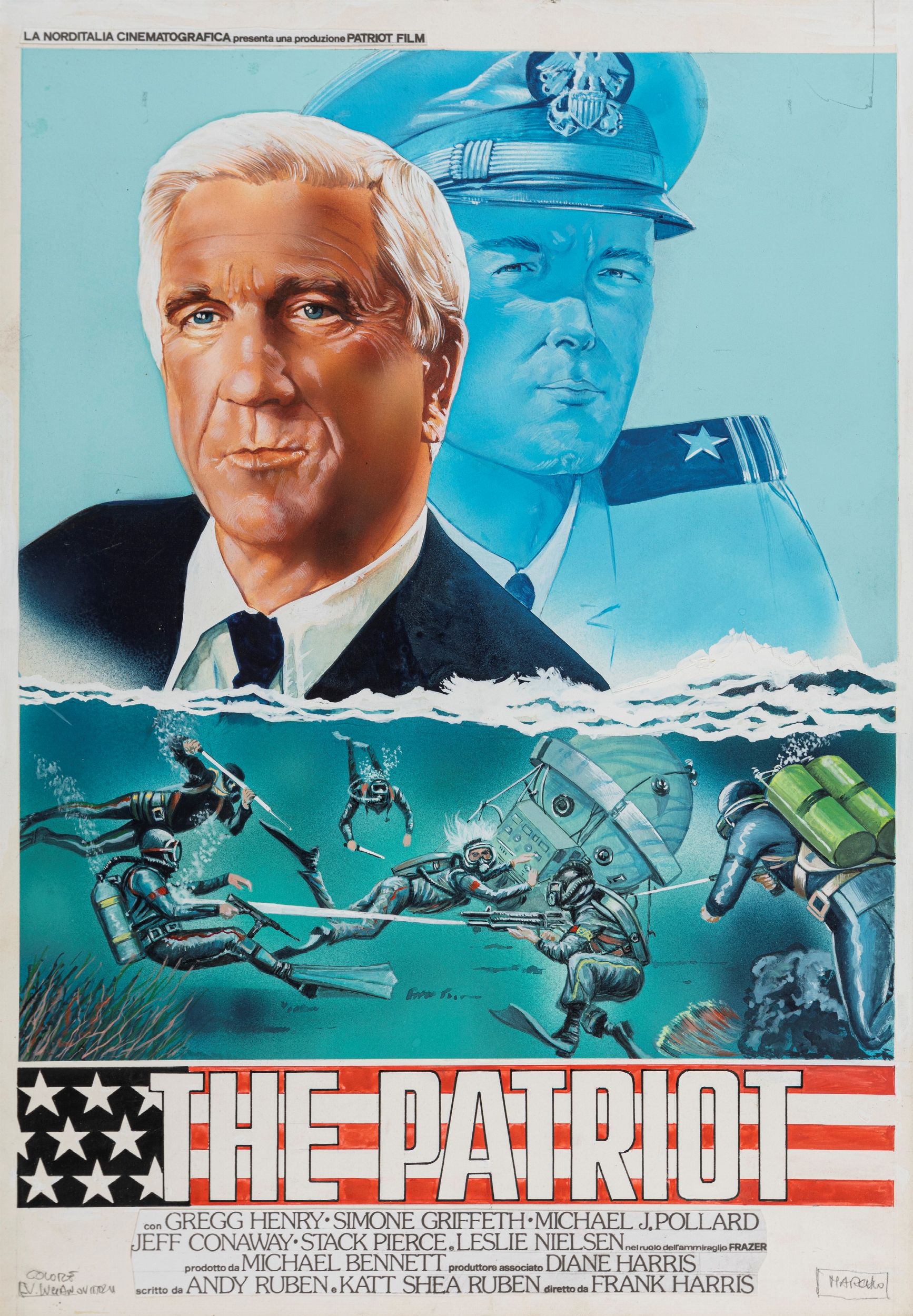 1986 Coppia di 2 bozzetti originali realizzati per la locandina del film The Patriot, diretto da Frank Harris con Gregg Henry e Leslie Nielsen nel 1986.