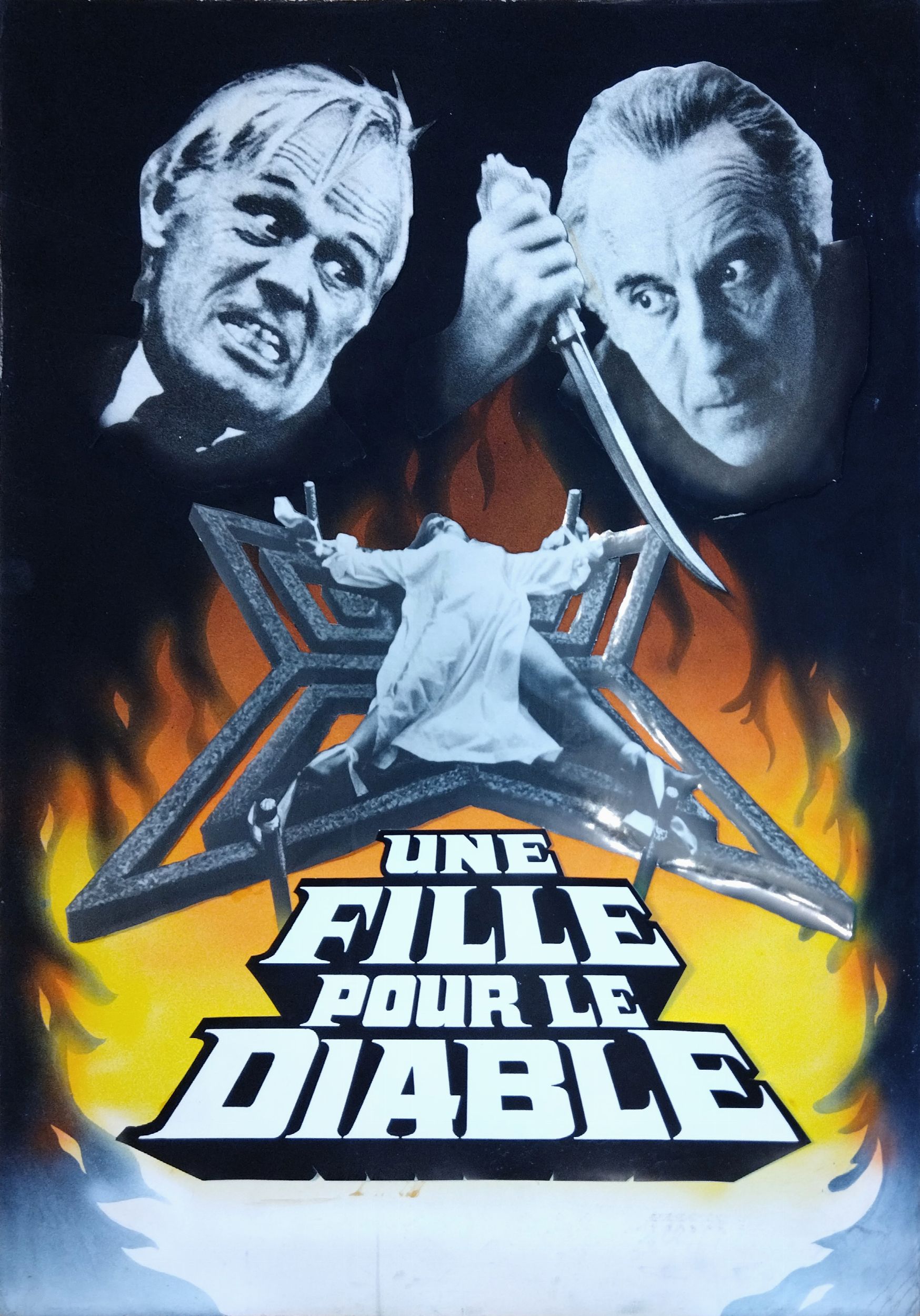 tempera e pellicola fotografica su cartone, 50 x 65 cm 1976 Bozzetto originale realizzato per la locandina definitiva francese del film Una figlia per il diavolo, diretto da Peter Sykes con Richard Widmark e Christopher Lee nel 1976. Lieve piega agli angoli inferiori.