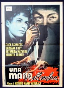tempera su cartone, 50,5 x 73 cm anni ’60 Bozzetto originale realizzato da Carmellini per la locandina ufficiale del film Una mano nell’ombra, diretto da Hugo Fregonese con Jack Palance, Constance Smith e Frances Bavier nel 1953. Lievi pieghe agli angoli. Firmato.