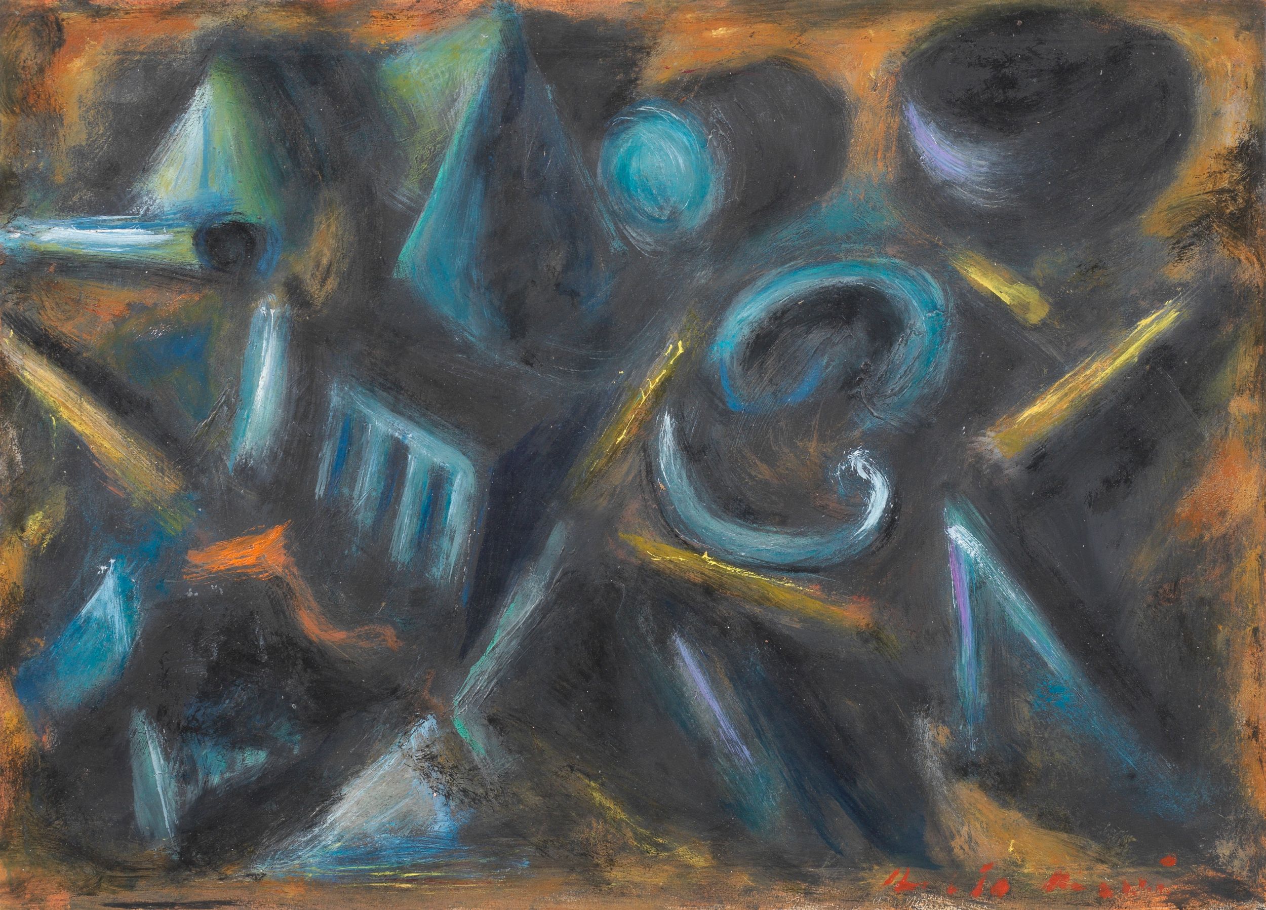 1981 Firma in basso a destra: Roberto Barni; firma, data e titolo al verso sulla tela: Roberto Barni / 1981 / Geometrie domestiche.