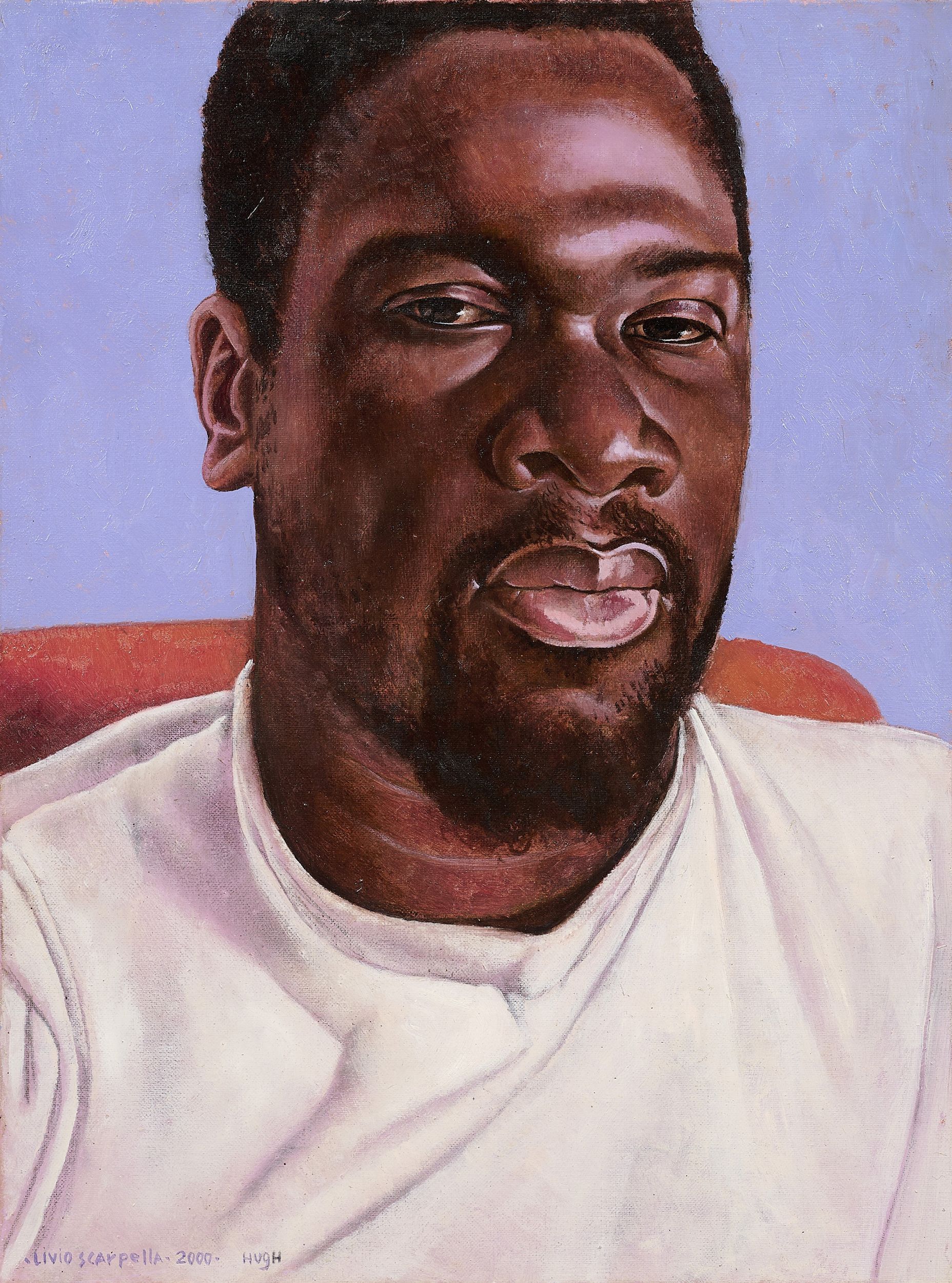 2000 Firma, data e titolo in basso a sinistra: - Livio Scarpella - 2000 - Hugh; firma, titolo e data al verso sulla tela: Livio Scarpella / Hugh / 2000; sul telaio: due timbri Antologia Galleria d'Arte, Monza.