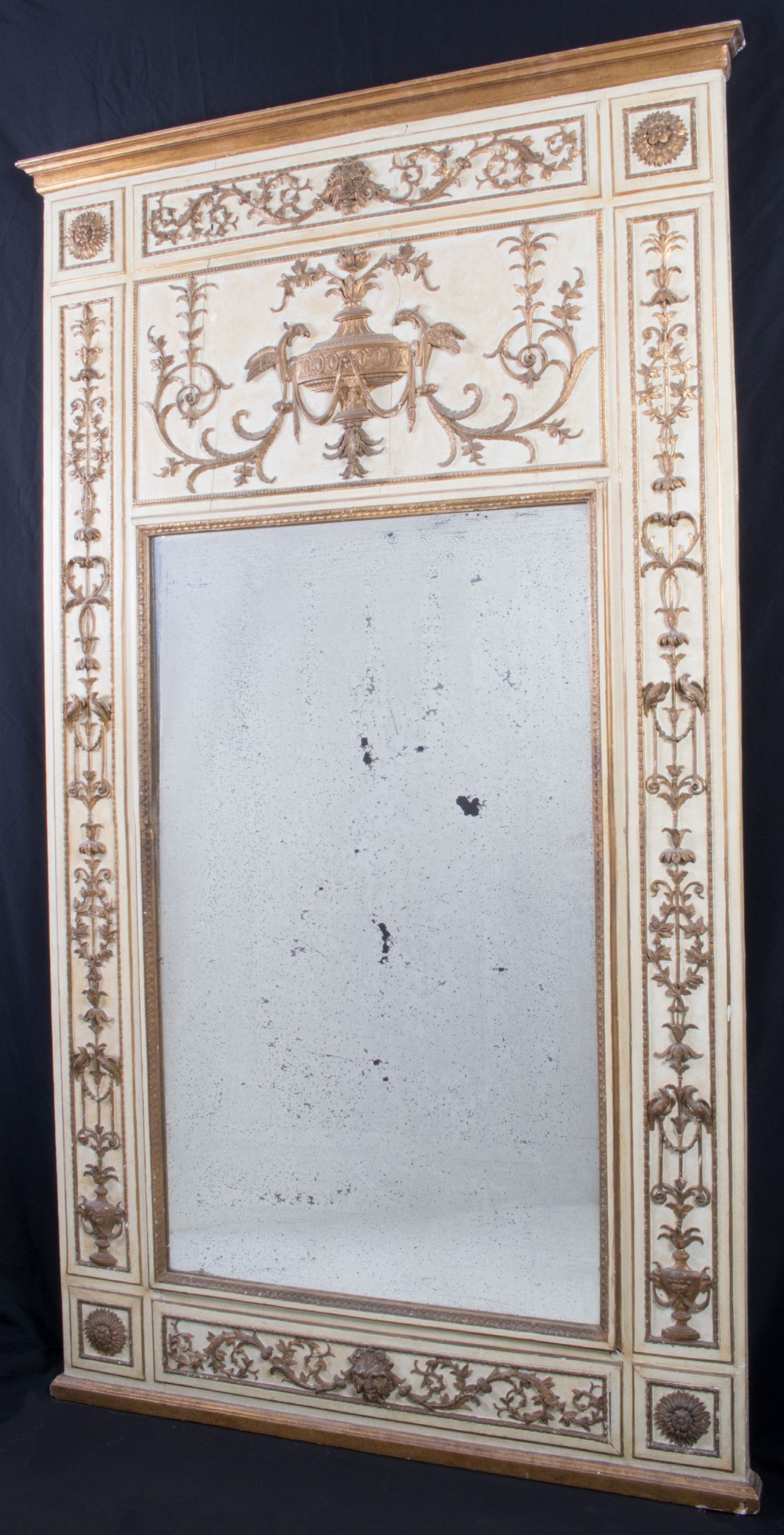 Specchiera caminiera in legno dorato e avorio