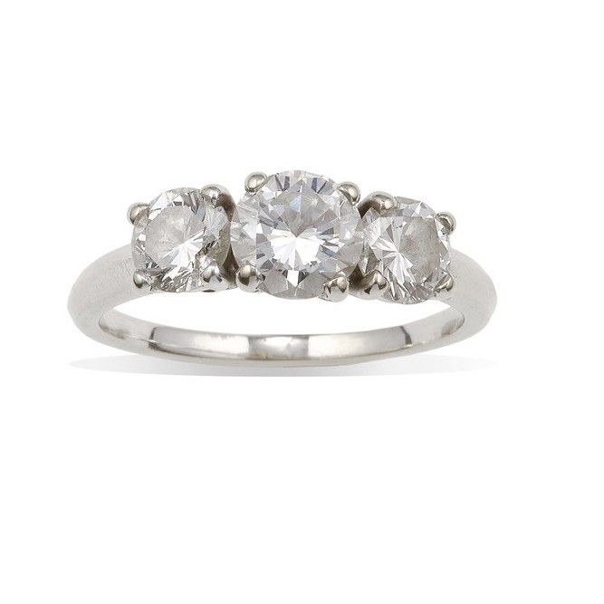 Anello con tre diamanti taglio brillante di ct 0.40, 0.75, 0.42 circa