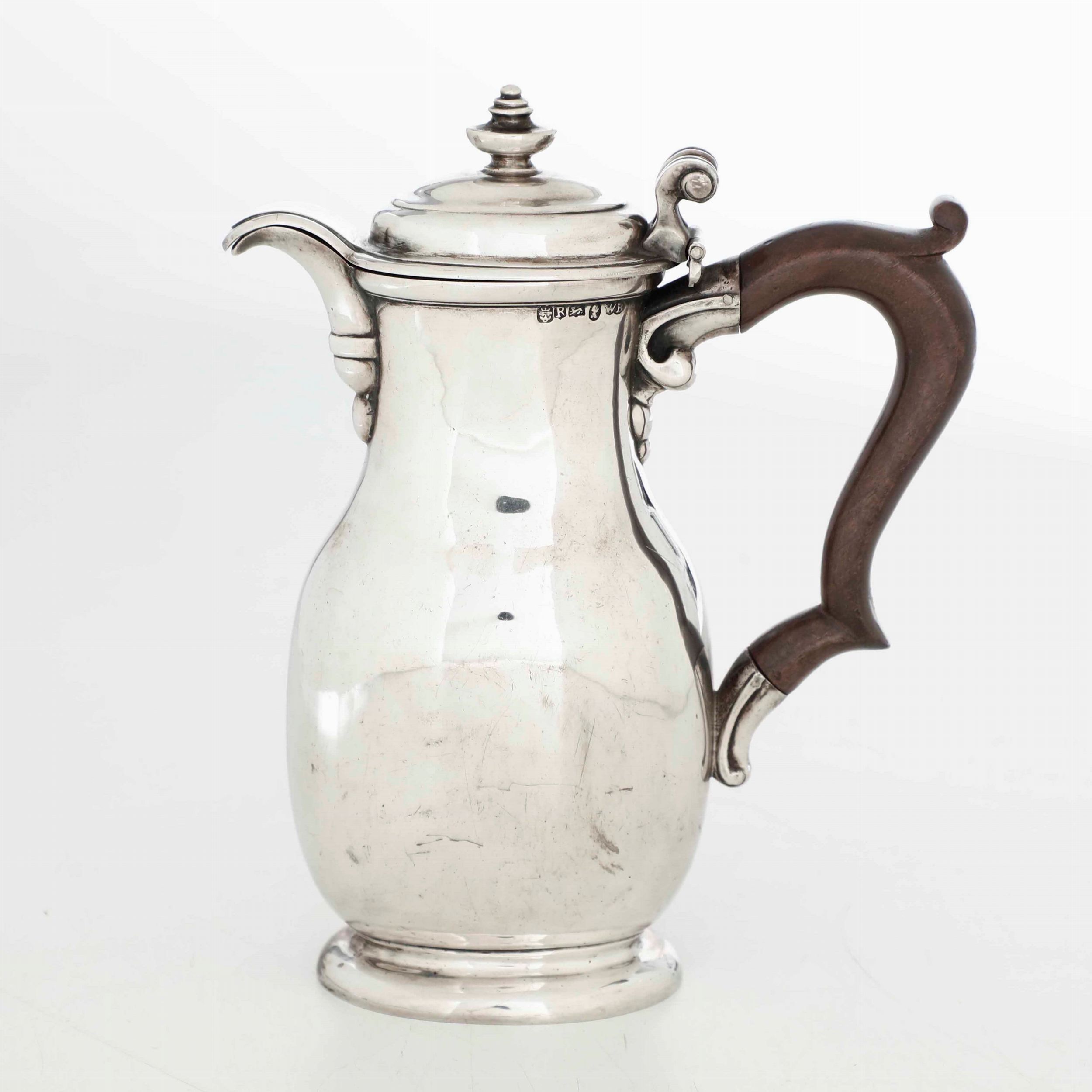 Caffettiera. Argento fuso e sbalzato. Argentiere del XVIII-XIX secolo. Marchi ad [..]