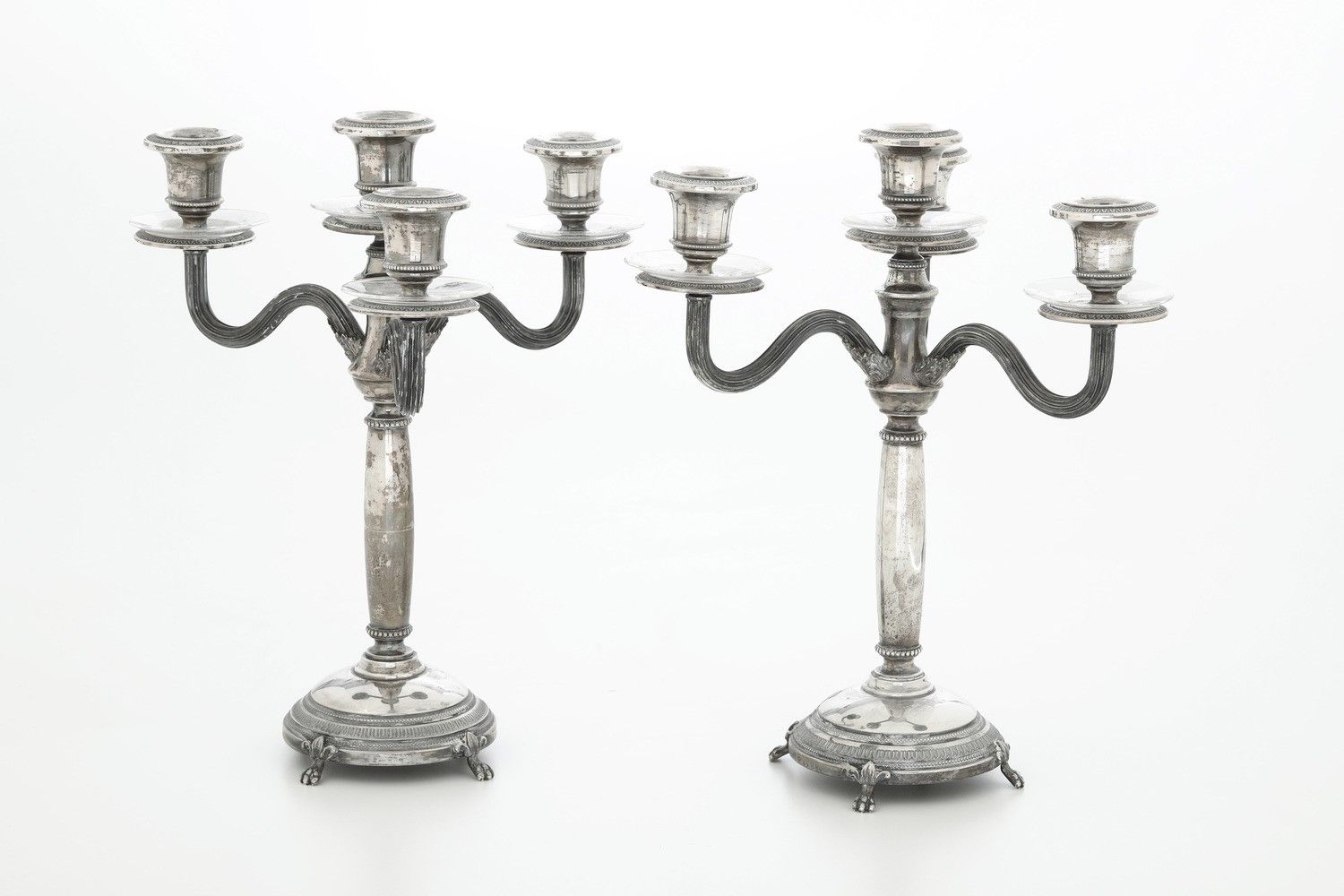 Coppia di candelabri a 4 luci. Argenteria italiana del XX secolo, argentiere Cesa, [..]