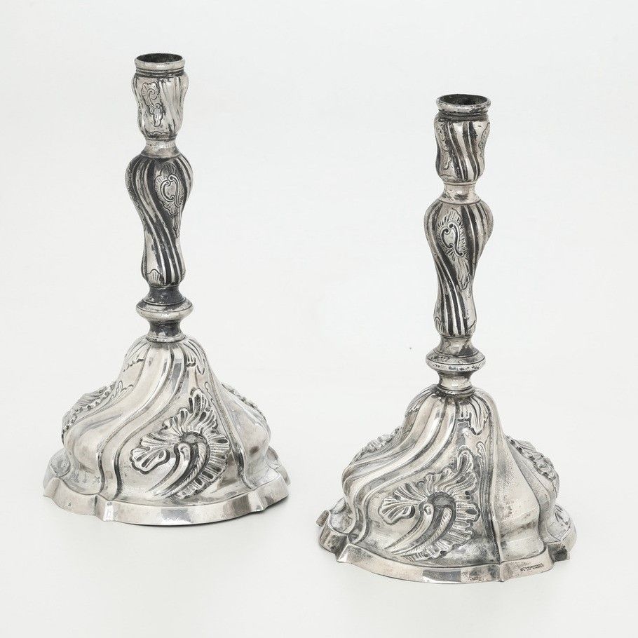 Coppia di candelieri. Argenteria italiana del XX secolo