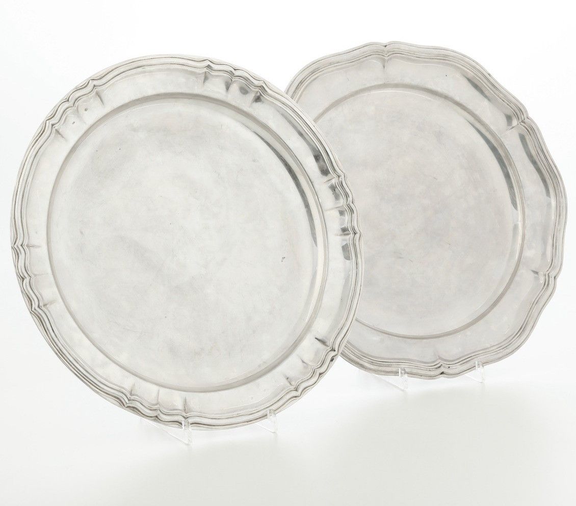 Due vassoi circolari. Argenteria italiana del XX secolo, argentieri differenti