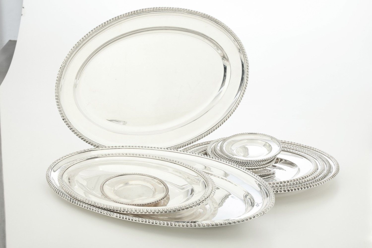 Gruppo di oggetti in metallo argentato con marchio ‘Jannetti'