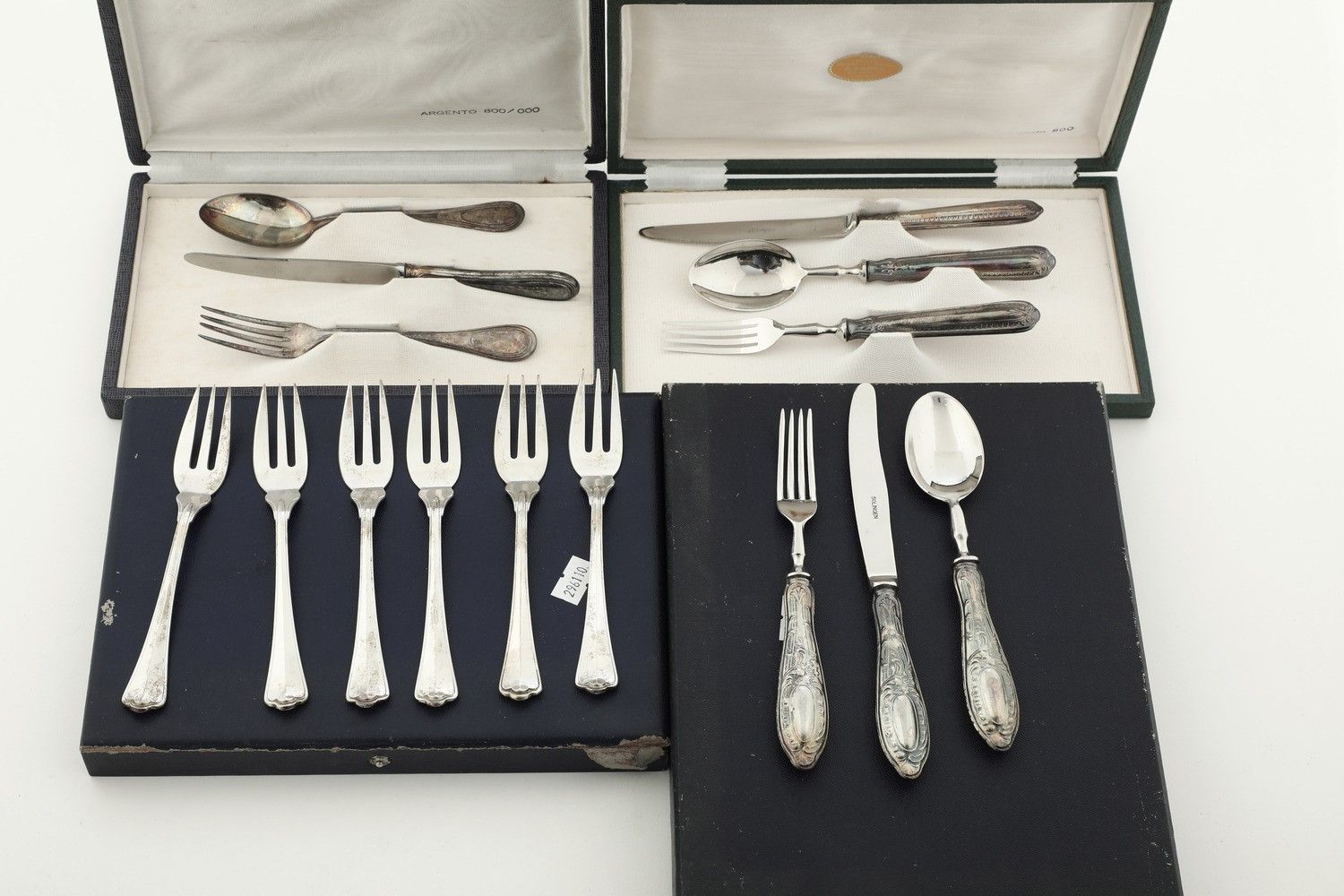 Lotto composto da quattro custodie contenenti posate varie. Argenteria italiana [..]