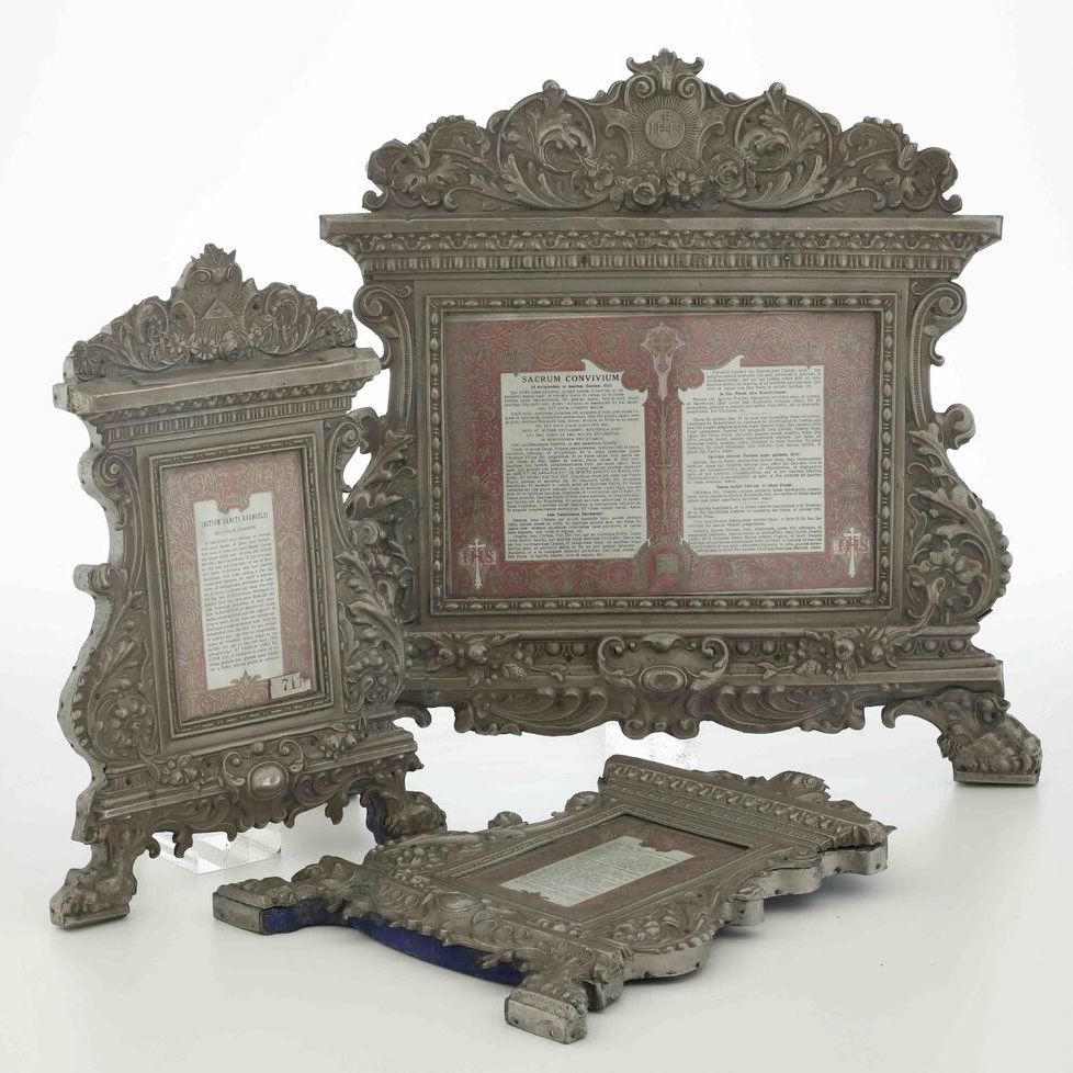 Lotto composto da tre cartaglorie in metallo argentato. XIX secolo