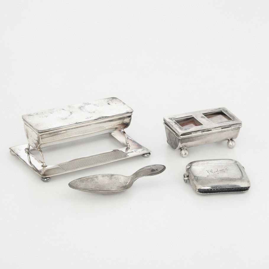 Lotto comprendente cucchiaino, portafiammiferi, portafrancobolli, portafiammiferi [..]
