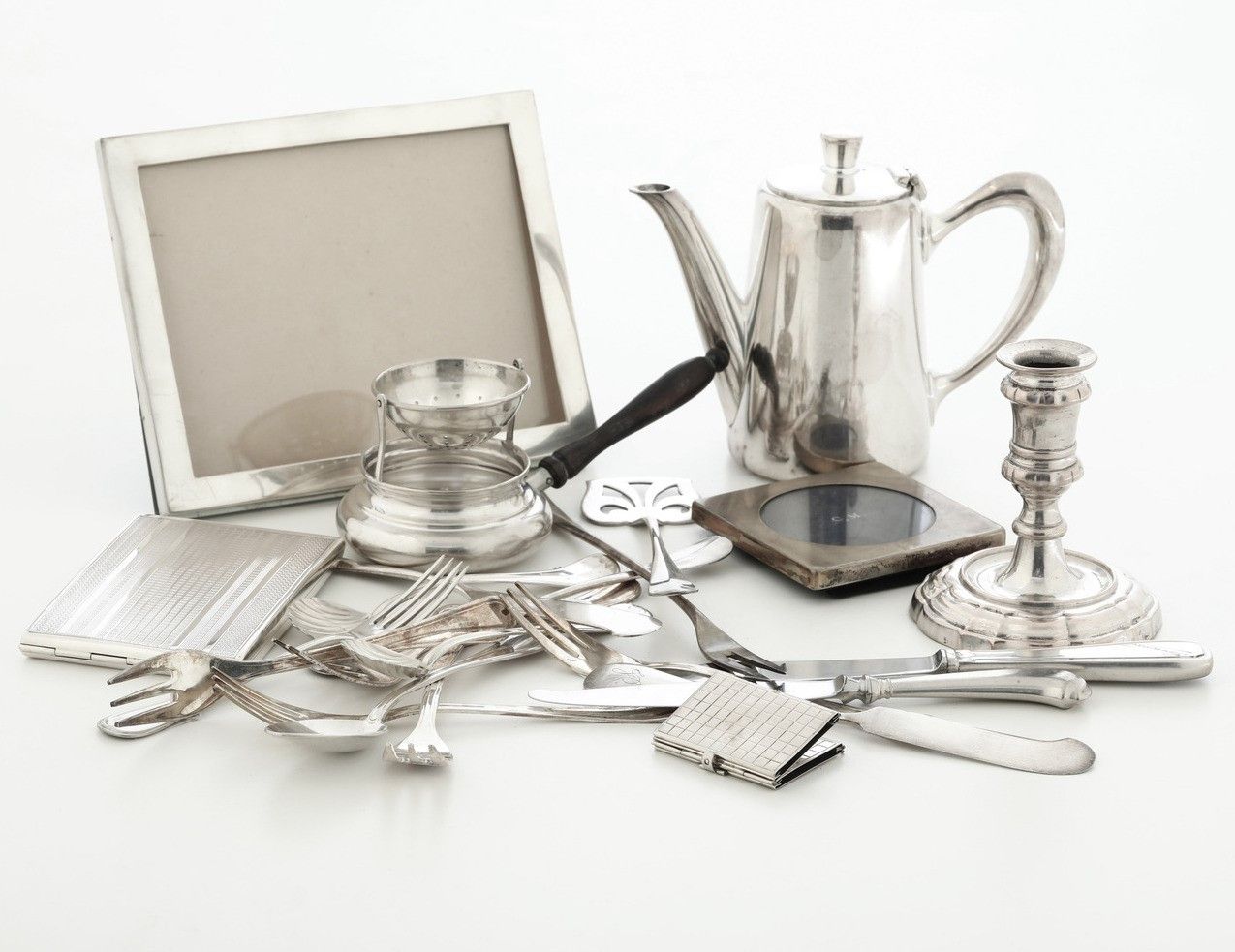 Lotto di oggetti in argento e metallo argentato