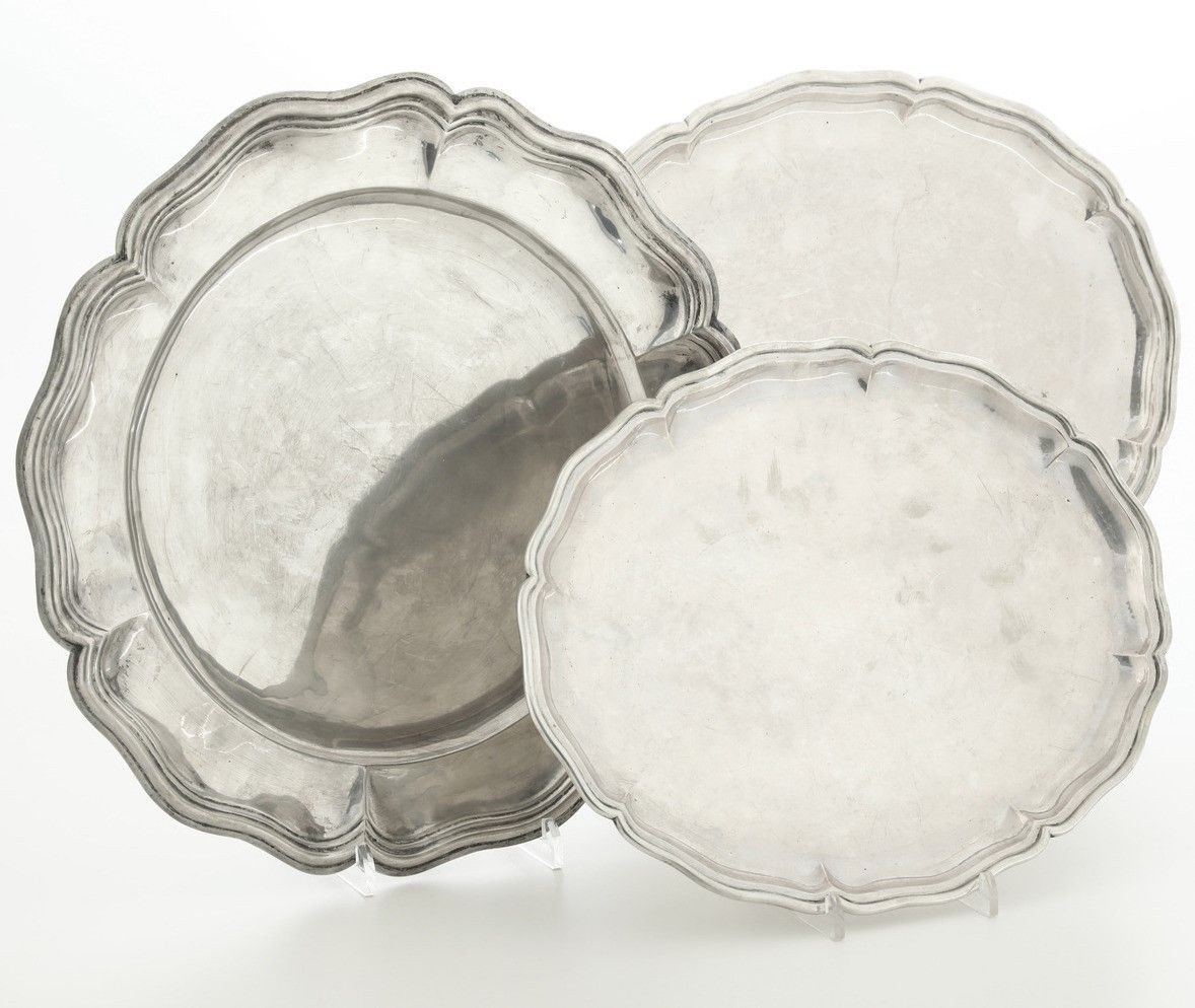 Lotto di tre vassoi. Argenteria italiana del XX secolo