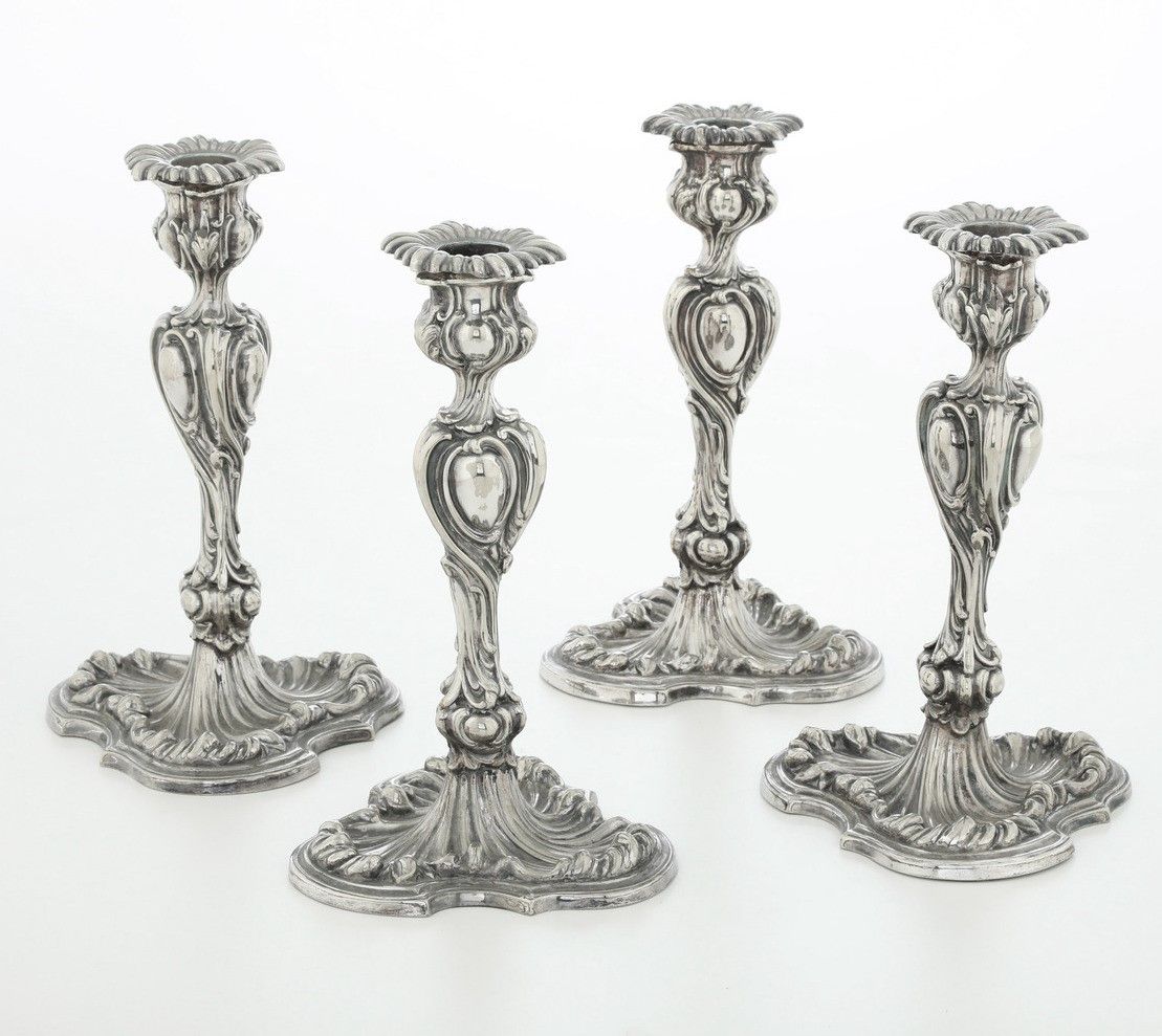 Quattro candelieri silverplated Elkington, città di Sheffield 1876