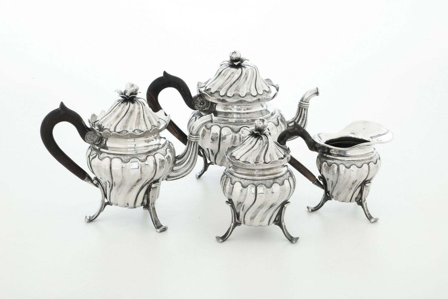 Servizio da tè e caffè di gusto barocchetto. Argenteria italiana del XX secolo