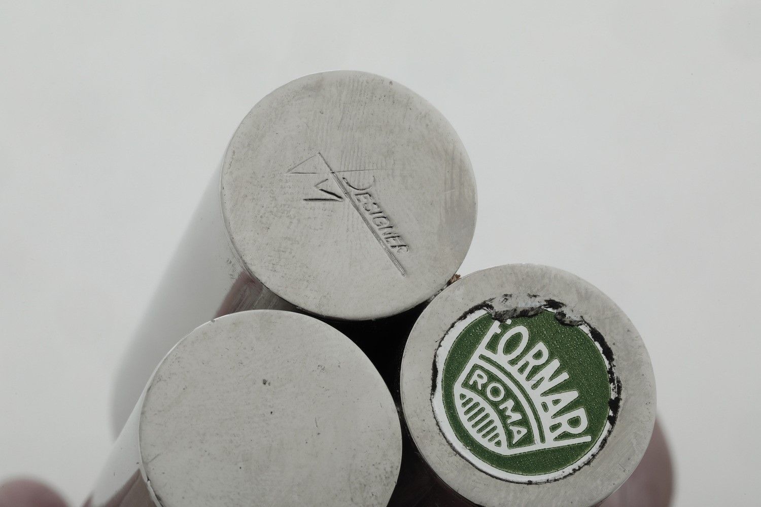 Vaso triplo in metallo argentato, Etichetta Fornari