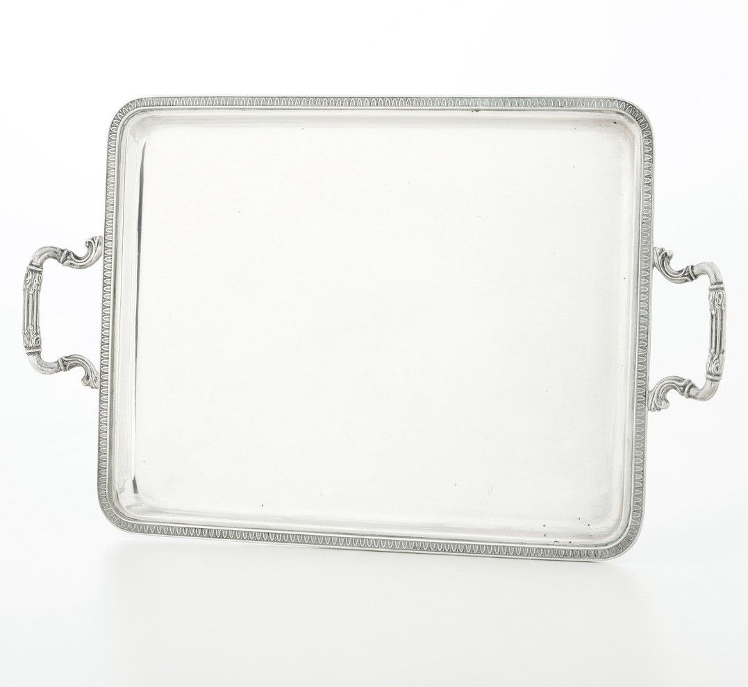 Vassoio biansato in stile neoclassico. Argenteria italiana del XX secolo