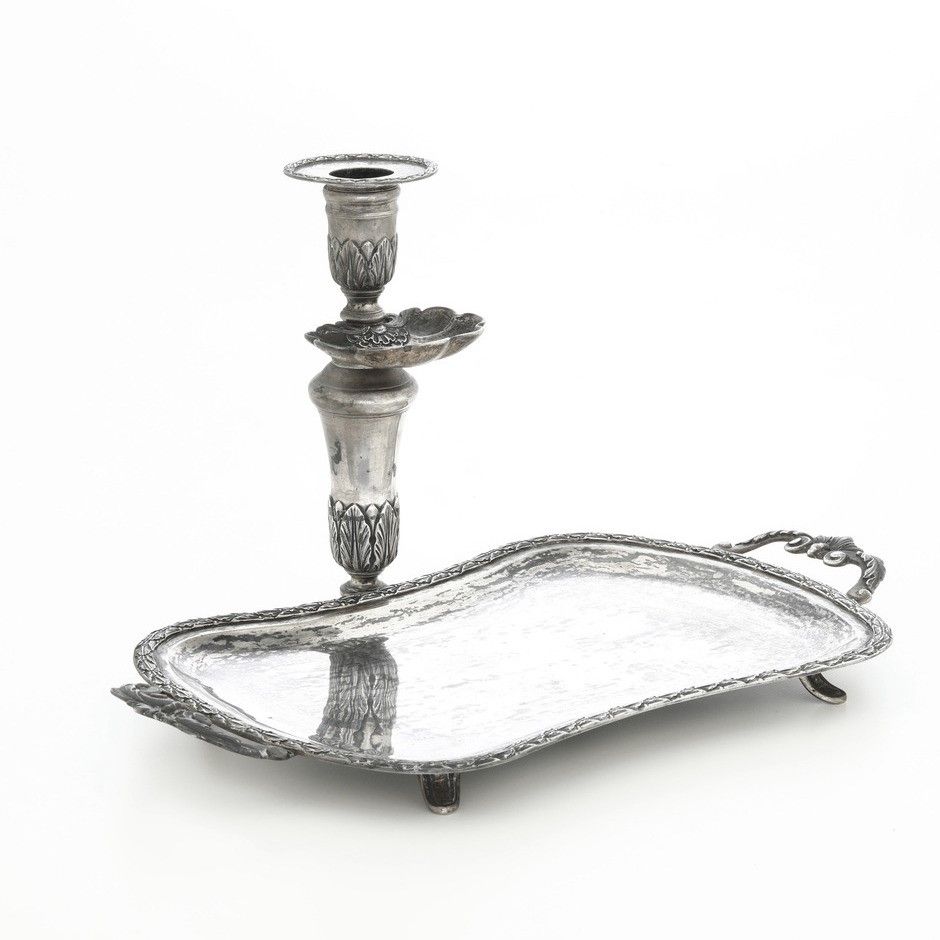 Vassoio con portacandela. Argenteria italiana del XX secolo per Codevilla, Genov [..]