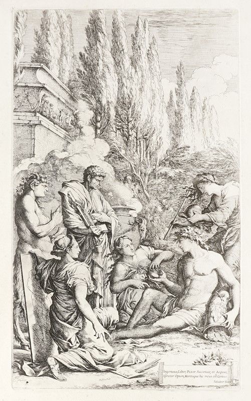 Acquaforte e puntasecca. mm 460x275. Foglio: mm 505x375. Bartsch, XX, 24. Wallace, 113. incisori napoletani del '600, 151. Ottima prova nel III stato di 3 su carta vergellata lievemente spessa con filigrana "fiore di giglio in doppio cerchio"..