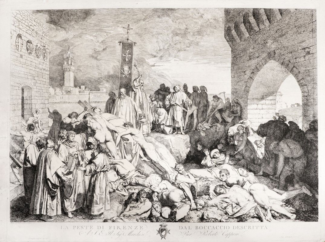 Acquaforte. mm 655x865. Foglio: mm 680x910. De Witt, 26. Paolozzi Strozzi, 42. Titolo e dedica al Marchese Pier Roberto Capponi (primo mecenate dell’autore) in basso al centro. In basso a sinistra: «Luigi Sabatelli invento, disegno e inc.» e «Giuseppe Volpini impresse». Questa incisione, uno dei capolavori del Sabatelli, è molto ben documentata dalle lettere dell'autore stesso e dal figlio Gaetano, il quale ricorda che il rame fu consegnato allo stampatore Angiolo Volpini il 5 gennaio 1802 e che la sua esecuzione richiese un anno di lavoro. L’autore studiò accuratamente la composizione poiché alcuni disegni preparatori, per lo più studi di nudo, sono passati sul mercato e altri sono conservati presso la Galleria d’arte Moderna di Roma.