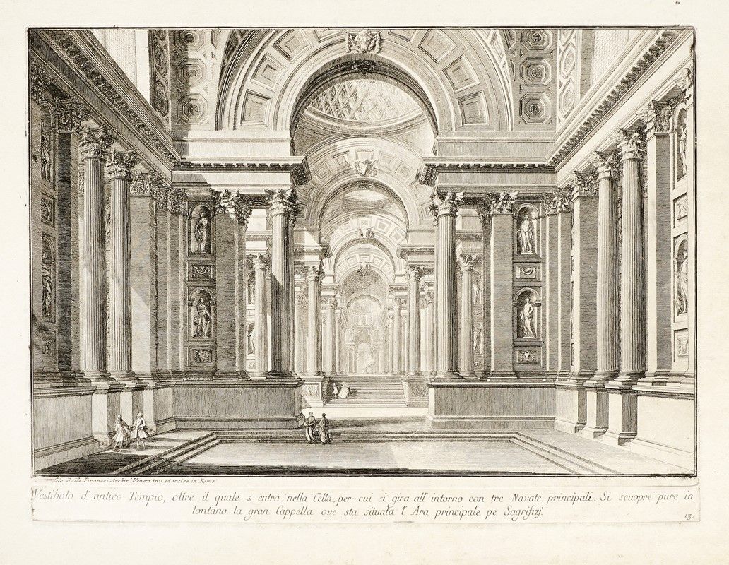Acquaforte, bulino e puntasecca. mm 258x352. Foglio: mm 358x505. Focillon, 12. Robison, 11. Firmata in basso a sinistra e numerata "13" all'angolo inferiore destro del margine con la lettera. Da Prima parte, serie pubblicata in I edizione con dodici tavole nel 1743-1749, e riedita successivamente fino alla VI edizione con complessive venti tavole. Ottima prova nel IV stato di 5, dalla I edizione di 6 (VI uscita 1748-1749). Carta vergellata spessa priva di filigrana.
