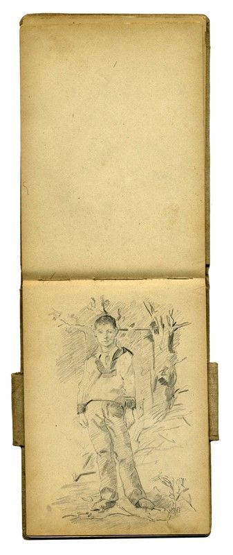 Album rilegato in tela (mm 160x205) contenente 55 disegni a matita raffiguranti studi di teste e di figure, paesaggi e schizzi vari preceduti da un testo autografo scritto a penna al piatto anteriore in data 13 maggio 1903 da Antonietta Piaggio a due anni dalla scomparsa del marito Pietro Costa celebre scultore, nato a Celle Ligure nel 1849 e morto a Roma nel 1901. Nel testo la consorte, che firma vari disegni col nome Antonietta, dichiara che l'album fu iniziato a Roma nel 1880 poco dopo il loro matrimonio e che attraverso di esso il marito le aveva insegnato a disegnare delineandovi dei suoi modelli da copiare. Pertanto l'album contiene alcuni studi di teste disegnati da Pietro Costa che la moglie replicava in modo più incerto nel foglio di fianco. Essendo presenti tuttavia altri studi di figura e di paesaggio qualitativamente superiori e non assegnabili a una principiante, ipotizziamo che essi siano attribuibili proprio allo stesso Pietro Costa. L'attività di quest'ultimo è nota soprattutto nel campo della scultura. Suoi sono il monumento di Vittorio Emanuele II a Torino e quello di Mazzini a Genova, così come anche alcune sculture funerarie nel cimitero di Staglieno.