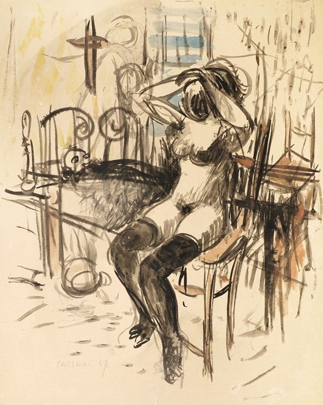 Pennarello e acquerello su carta. mm 430x350. Firmato e datato a matita in basso a destra.