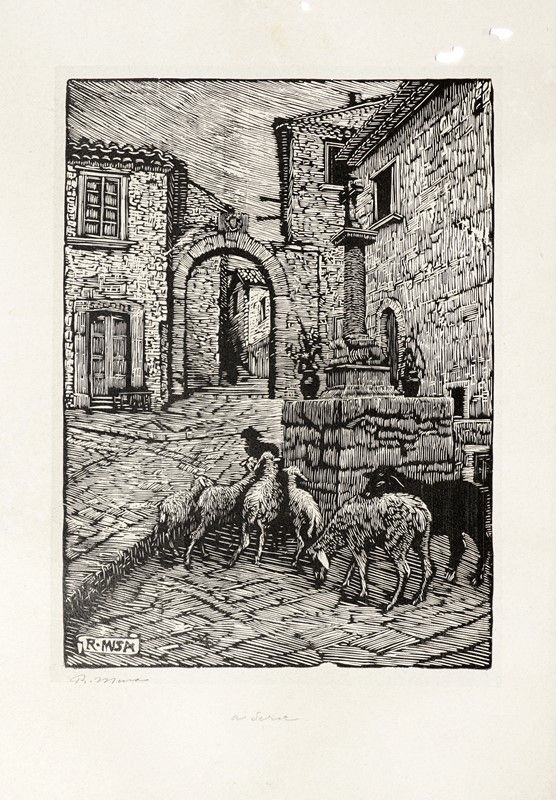 Raccolta di 122 xilografie. mm 50/450x50/530. Foglio: mm 140/610x100/780. Tra gli autori segnaliamo: Gill Erik (3), Lucerni Ugo (1), Rondini Giuseppe (10), Morbiducci Publio (26 prove per la Corona del Re di Vittorio Emanuele Bravetta del 1925 + 5 incisioni varie), Gavasci Mariano (20), Del Neri Edoardo (15), Baccarini Domenico (2), Pettinelli Diego (2), D'Ardia Caracciolo Lorenzo, Pianigiani Giorgio (2), De Carolis Donella, Carta Giorgio (2), Musa Romeo (2), Floris Carmelo, Buzzacchi Quilici (5) Mimi , Baldinelli Armando (2), D'Aloisia Da Vasto Carlo (1), Mantelli Emilio (7), Bartoli Amerigo e altri.