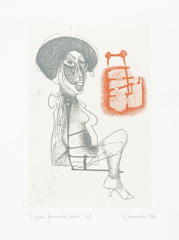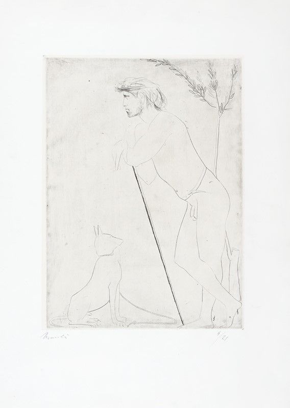 1) Manzù G., Il pittore e la modella. Litografia. mm 300x395. Foglio: mm 510x610. Firma a matita in basso a sinistra, tiratura a matita in basso a destra. Es. 6/7. 2) Id, Pastore con cane. Acquaforte. mm 380x280. Foglio: mm 590x455. Firmata a matita in basso a sinistra, tiratura a matita in basso a destra. Es. 4/21. 3) Calandri M., Voliera. Acquatinta. mm 240x340. Foglio: mm 380x495. Firma a matita in basso a destra, tiratura ed iscrizione "Tiro a legno" a matita in basso a sinistra. Es. 15/30. 4) Janssen H., Selbstbildnis. 1973. Acquatinta. mm 255x190. Foglio: mm 370x265. Firma a matita in basso a destra, tiratura a matita in basso a sinistra. Es. 35/45. 5) Bonnard P., Le chat. Acquaforte. mm 175x120. Foglio: mm 320x250. Siglato in lastra al margine inferiore. 6) Hrdlicka A., Rake's progress. 1970. Acquaforte. mm 325x490. Foglio: mm 500x655. Firmata e datata a matita in basso a sinistra. Tiratura a matita in basso a destra. Es. 56/90. 7) Guttuso R., Ritratto. Offset. mm 470x330. Foglio: mm 700x500. Dedica in lastra in basso a destra. Firma e dedica a matita all'angolo inferiore destro. "P.P." iscritto a matita in basso a sinistra. 8) Vespignani R., Ballata della Morgotona. 1979. Acquaforte. mm 315x495. Foglio: mm 455x600. Firmata e datata a matita in basso a destra, numerata a matita in basso a sinistra. Es 8/100. 9) Vespignani R., Piante. 1965. Acquaforte. mm 410x270. Foglio: mm 670x490. Firma e data a matita in basso a destra, tiratura a matita in basso a sinistra. Timbro a secco all'angolo inferiore destro. Es. 10/20. 10) De Vita L., Figura in bianco e nero. Acquaforte. mm 350x300. Foglio: mm 695x500. Firmata a matita in basso a sinistra, tiratura a matita in basso a destra. Timbro ad inchiostro dello stampatore Il Picchio all'angolo inferiore destro del verso. 11) Nagel P., Postsack. 1970. Acquaforte. mm 640x500. Foglio: mm 760x580. Datata in lastra al margine destro. Firmata e datata a matita in basso a destra. Titolata a matita in basso al centro. Tiratura a matita in basso a sinistra. Es. 100/100. 12) Bruni B., I fiori. 1955. Acquaforte. mm 400x325. Foglio: mm 765x640. Firmata e datata a matita in basso a destra, "Prova" a matita in basso a sinistra. 13) Id, La rosa. 1966. Acquatinta. mm 645x425. Foglio: mm 710x475. Firmata e datata in lastra in basso a destra. Controfirmata e controdatata a matita in basso a destra. Tiratura a matita in basso a sinistra. Es. 6/30. 14) Dufy R., Due figure. Acquaforte. mm 195x145. Foglio: mm 380x250. 15) Guerreschi G., Figura femminile seduta. 1980. Acquaforte. mm 245x175. Foglio: mm 420x320. Firmata e datata a matita in basso a destra. Titolo e tiratura a matita in basso a sinistra. Es. V/2. 16) Id, Senza titolo. Due figure. Acquaforte. mm 285x200. Foglio: mm 690x490. Firma a matita in basso a destra. Tiratura a matita in basso a sinistra. Timbro a secco di Graphis Arte all'angolo inferiore destro. Es. XVI/XX. 17) Bodini F., Florida dancing. 1959. Acquaforte. mm 300x260. Foglio: mm 600x500. Titolata in lastra al margine superiore. Firmata e datata a matita in basso a destra. Tiratura a matita in basso a sinistra. Es. 19/25. 18) Pougny J., Interno. Fotoincisione. mm 243x340. Foglio: mm 380x560. Firma a matita in basso a destra, tiratura a matita in basso a sinistra. Timbro a secco all'angolo inferiore sinistro. Es. 53/220. 19) Ackermann P., Senza titolo. 1975. Acquaforte. mm 325x390. Foglio: mm 460x650. Firma e data a matita in basso a destra, "Prova" a matita in basso a sinistra. 20) Id, Monumento. 1971. Acquaforte. mm 390x390. Foglio: mm 340x505. Firmata e datata a matita in basso a destra. "P.V." a matita in basso a sinistra.