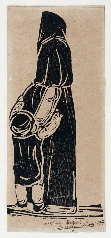 1) Nonna e nipote. 1914. Xilografia. mm 240x110. Foglio: mm 260x112. Dedica, firma e data a penna e inchiostro bruno in basso a destra. Testo a stampa con iscrizione: "tiratura unica di duecento copie, numerazione autografa dell'autore, trenta copie fuori commercio, edizione curata da Sergio Ciruzzi. Firenze MCMLXXI" al margine inferiore del verso. 2) Autoritratto. 1914. Xilografia. mm 293x207. Foglio: mm 473x325. FINI. N. 27. Timbro ad inchiostro blu della collezione Rodolfo Fini al verso. Iscritto: "Lorenzo Viani, Autoritratto 1914, xilografia originale pubblicata su Viani Xilografo n. 27, e su Viani Uomo pag. 78" a pennarello nero con firma di Rodolfo Fini sul verso. 3) Cesare Battisti. 1916. Xilografia. mm 450x286. Foglio: mm 495x350. FINI. N. 177. Firmata in lastra all'angolo inferiore destro. Timbro a secco della Collezione Rodolfo Fini di Viareggio all'angolo inferiore sinistro. Ulteriore timbro ad inchiostro blu della Collezione Rodolfo Fini al verso con testo descrittivo a pennarello nero. Opere accompagnate da lettera manoscritta dello stesso Rodolfo Fini.