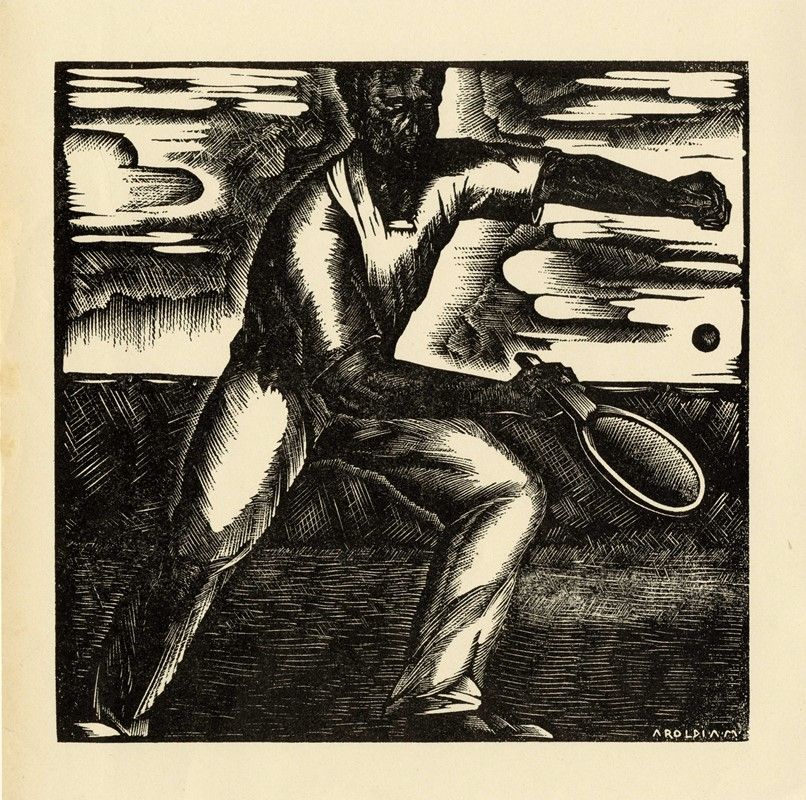1) Nonni F., San Sebastiano. 1925. Xilografia. mm 280x210. Foglio: mm 346x246. DIRANI, VOL. X, TAV. 89. Pubblicata in "Xilografia", anno II, n. 19, 1925. 2) Id., Orfeo. 1926. Xilografia. mm 80x172. Foglio: mm 303x245. DIRANI, VOL X, TAV. 103. 3) Ugonia G., La Rocca. 1923. mm 145x105. Foglio: mm 310x224. Monogrammata e datata in lastra al margine inferiore. 4) Lipinsky S., L'Abbondanza. Xilografia. mm 173x127. Foglio: mm 280x220. Opera originariamente stampata come allegato per la pubblicazione Sigmund Lipinsky Ex libris di Maria Adriana Gai ed Egisto Bragaglia, edita da Agro. Questo specifico foglio è probabilmente una prova di stampa postuma. 5) Baccarini D., La passeggiata. Xilografia. mm 90x68. Foglio: mm 260x180. Monogrammata in lastra in basso a destra. 6) Aroldi A. M., Giocatore di tennis. Xilografia. mm 195x195. Foglio: mm 230x230. Firmata in lastra all'angolo inferiore destro.