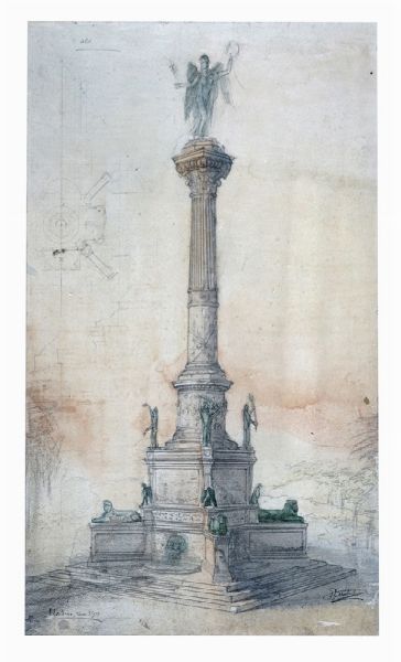 Matita ed acquerello su carta greve. mm 590x345. Firmato in basso a destra. Luogo e data in basso a sinistra. Ulteriori accenni di studi al verso del supporto.