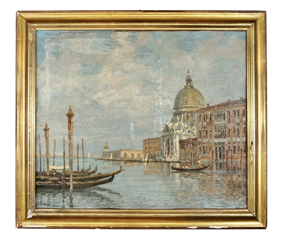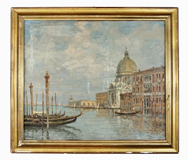 Olio su cartone. cm 50,5x59,5. Firmato in basso a destra. Nome d'artista iscritto a matita sul verso del supporto.