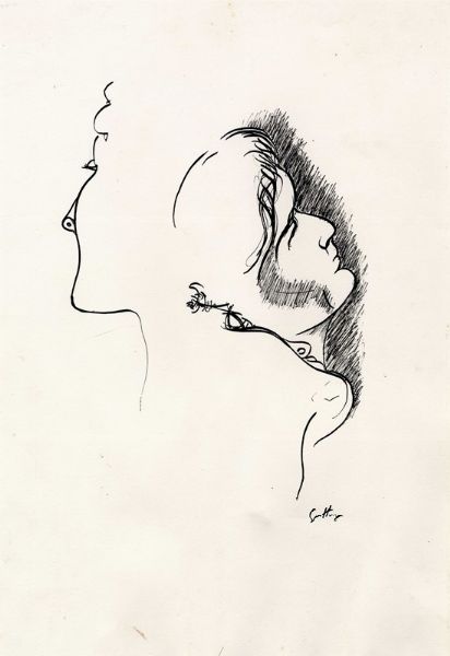 Penna e inchiostro di china su carta. mm 400x275. Iscritto: "Guttuso" in basso a destra.