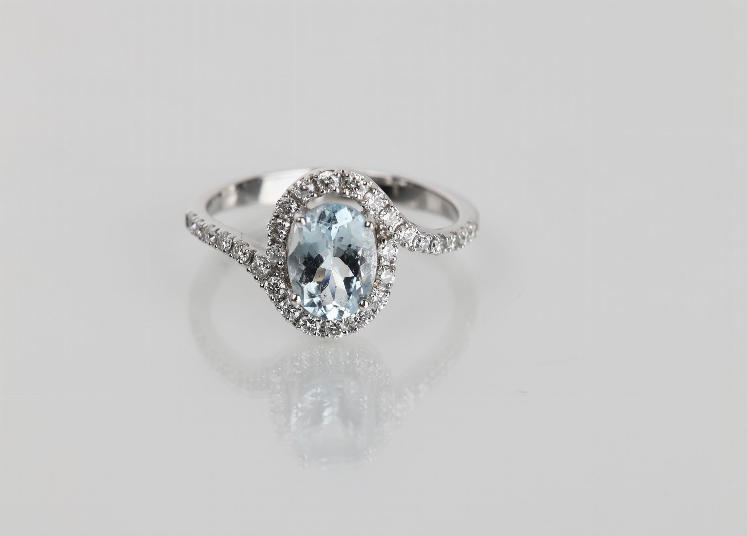 Anello in oro, acqua marina e brillanti