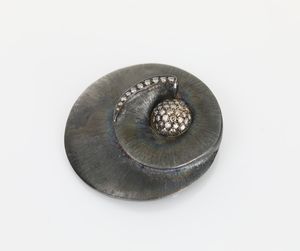 Diametro cm 6 Oro giallo 750/00. Argento brunito 925/000. Diamanti brown taglio rotondo brillante. Peso complessivo [..]