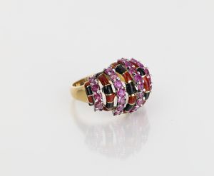 cm 4,5 Oro giallo 750/000. Con zaffiri, smeraldi, rubini, diamanti in taglio carré.