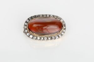 Cm 5x3 Oro a basso titolo, argento, diamanti taglio rosa. Peso complessivo gr 14,50.