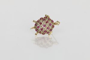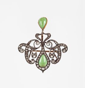 cm 5 x 4 Fine XIX Oro giallo a basso titolo, argento. Diamanti in taglio rosa e turchese in taglio goccia. Peso [..]