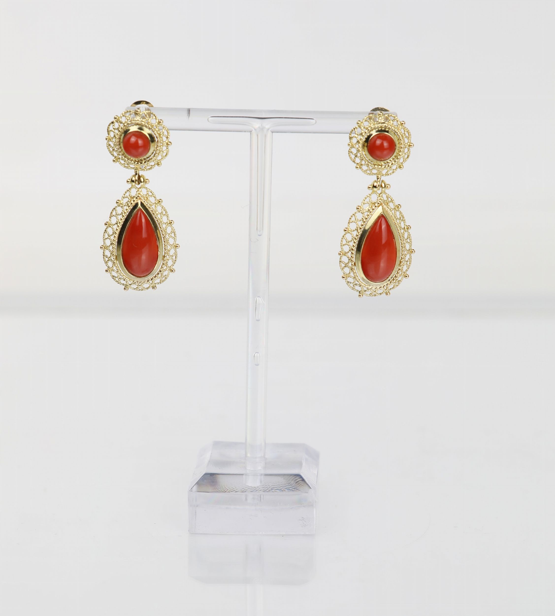 Coppia di orecchini in oro e corallo