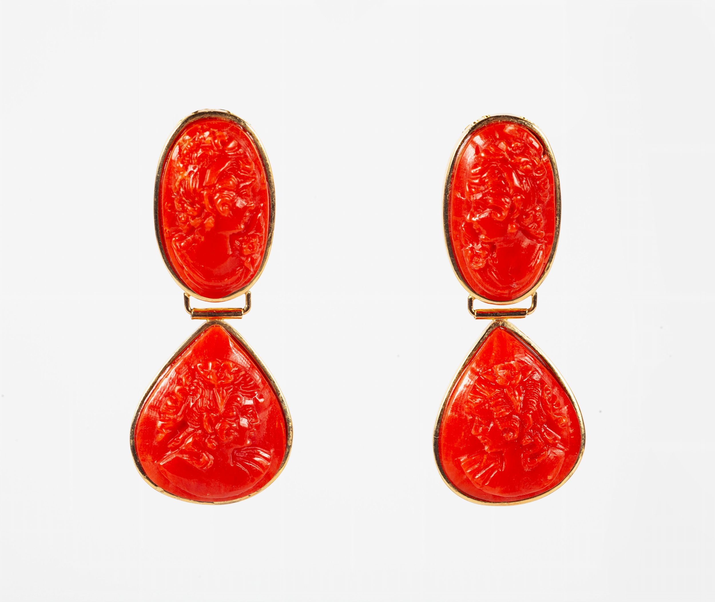 Coppia di orecchini in oro e corallo rosso