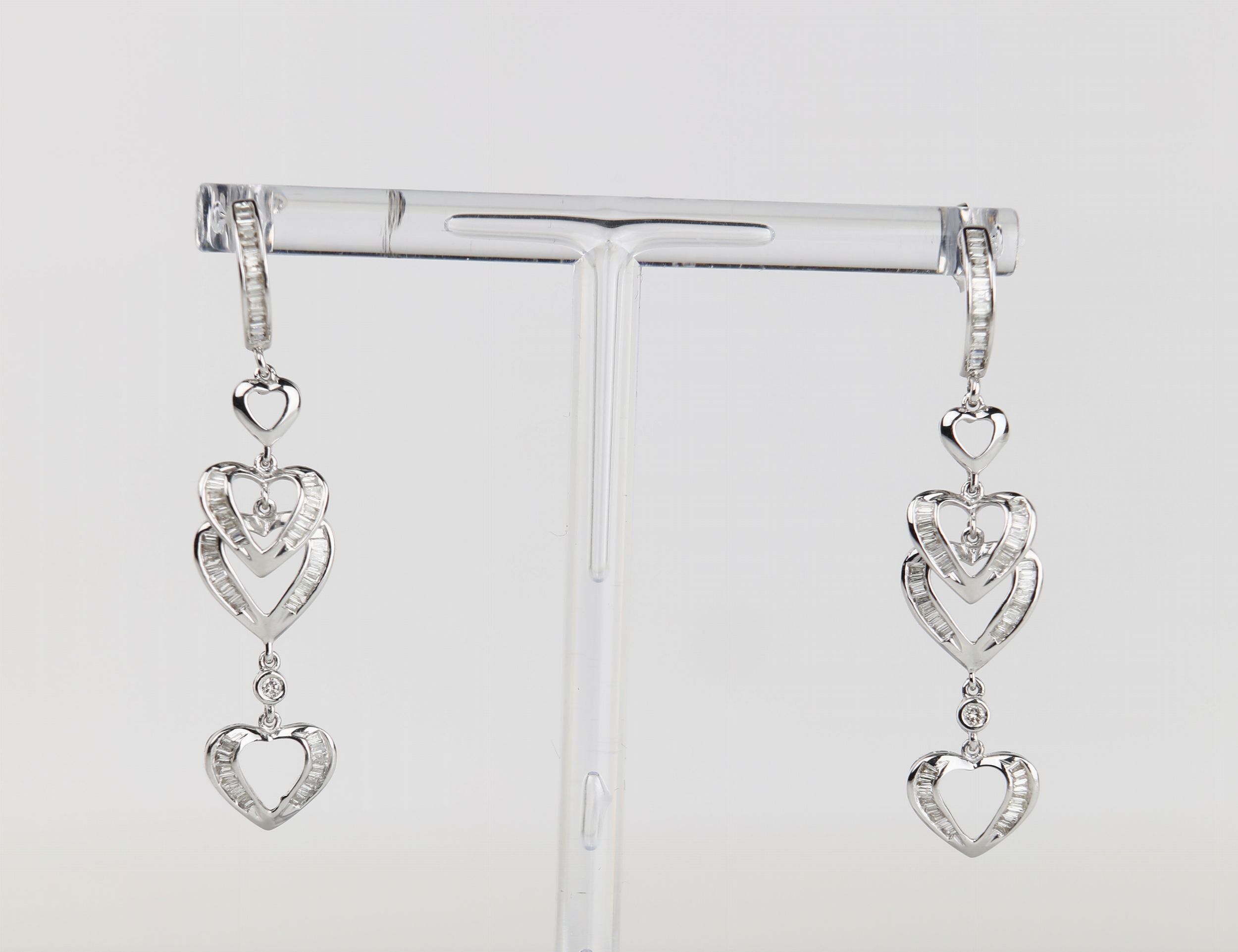 Coppia di orecchini pendenti a cuore in oro e brillanti