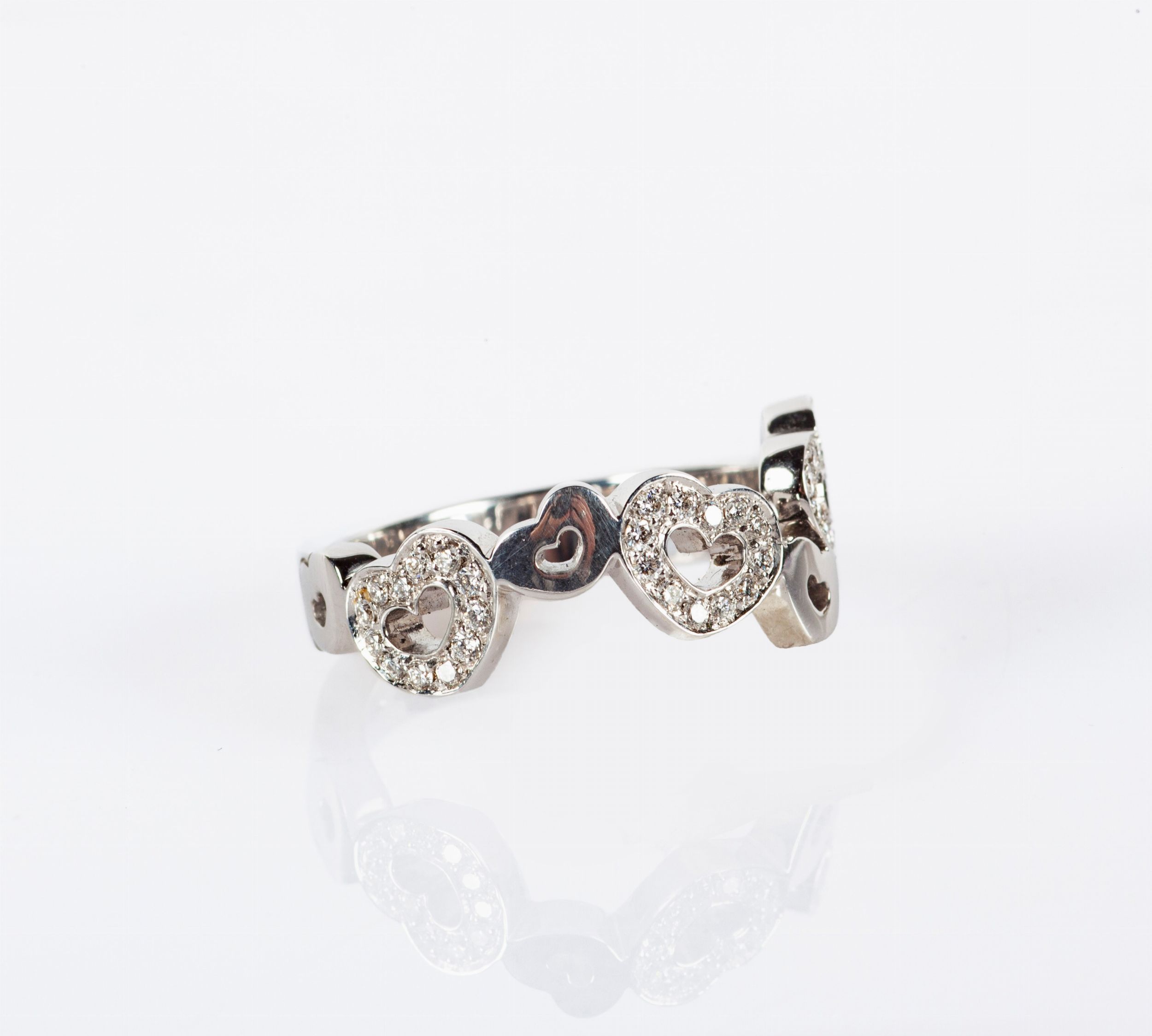 Oro bianco 750/000. Diamanti in taglio rotondo brillante, G VS. Peso complessivo 7,80.