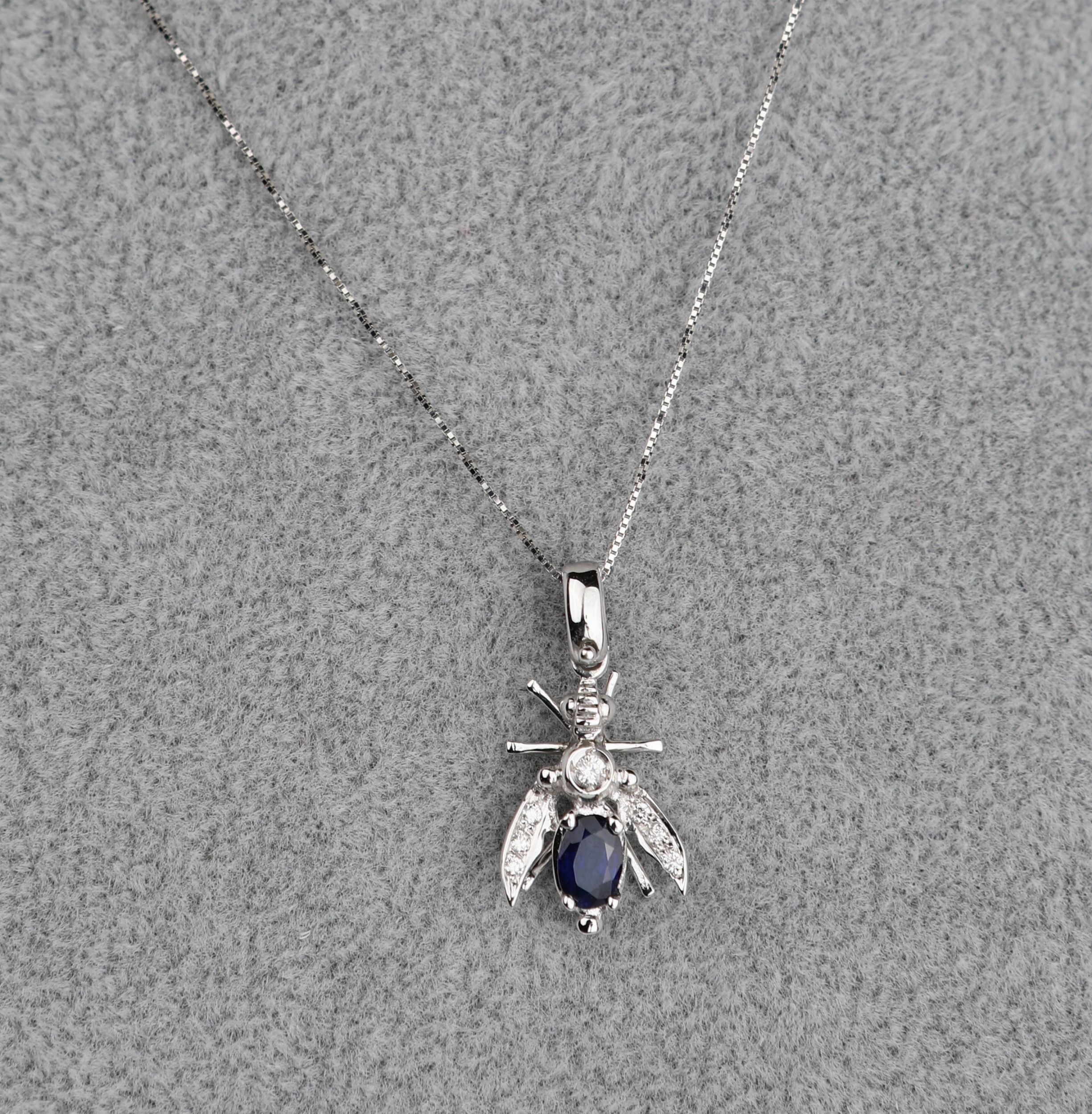 Pendente a mosca in oro, zaffiro e brillanti