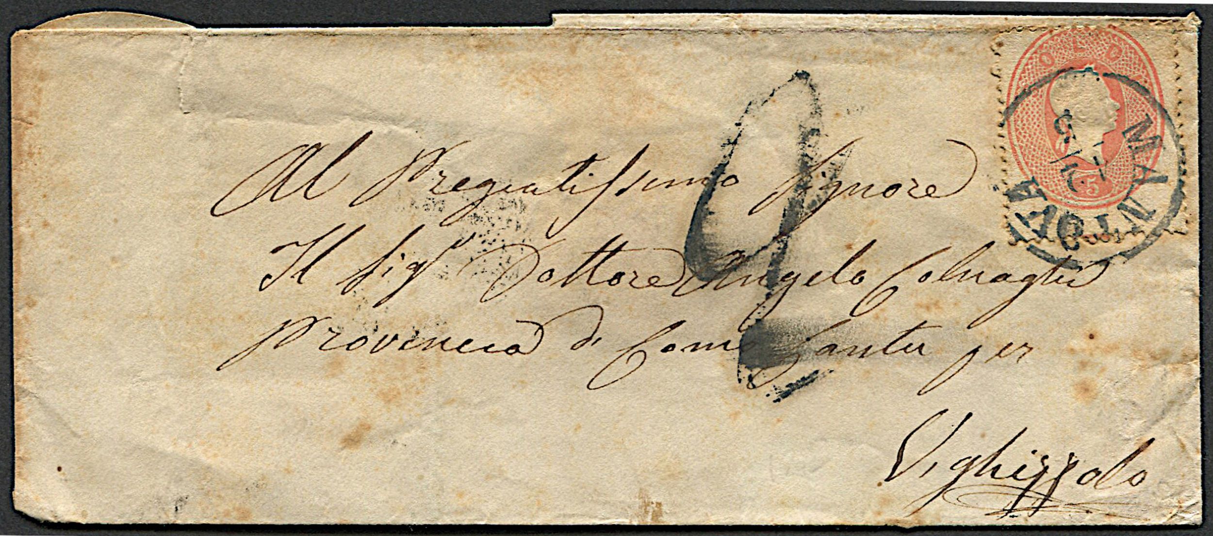 1862, Lombardo Veneto, lettera da Mantova per Vighizzolo (Cantů) del 12 maggio 1 [..]