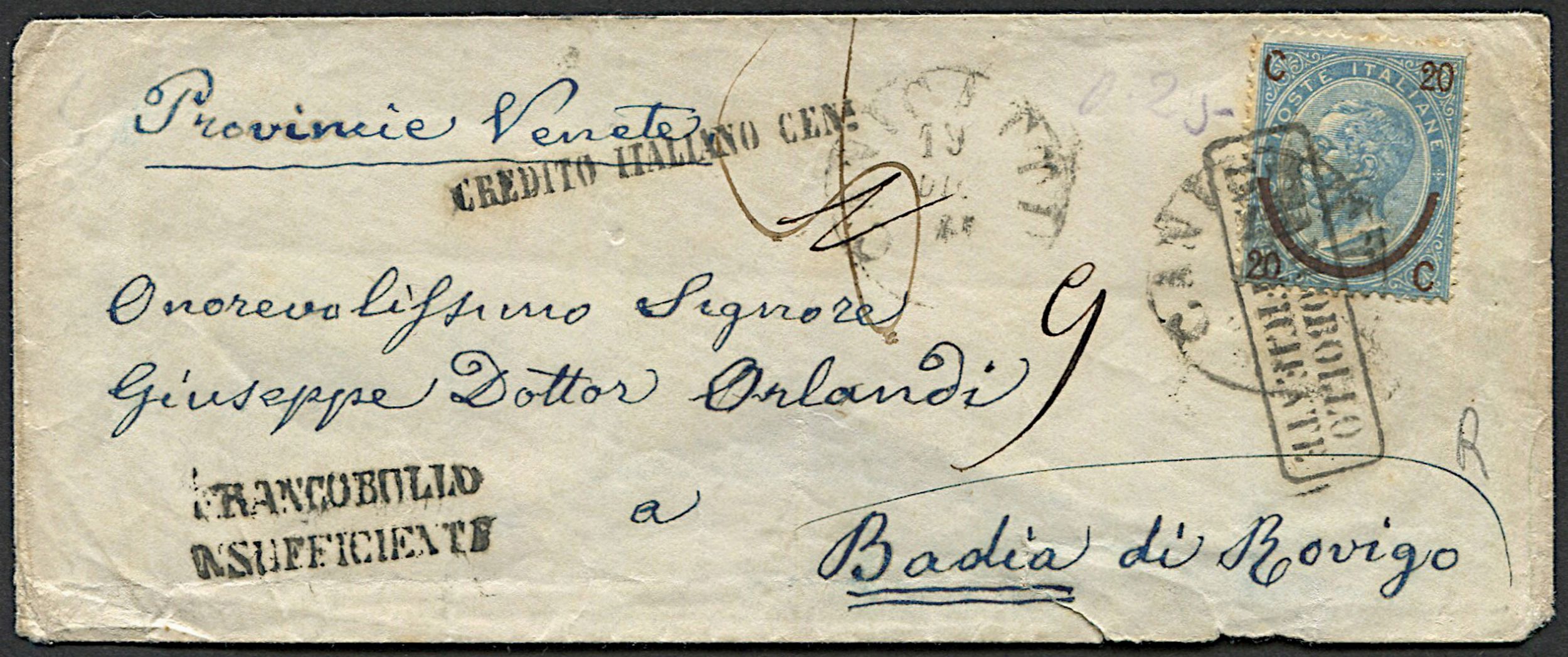 1865, Regno d’Italia, lettera da Canicattì per Badia di Rovigo, del 19 dicembre [..]